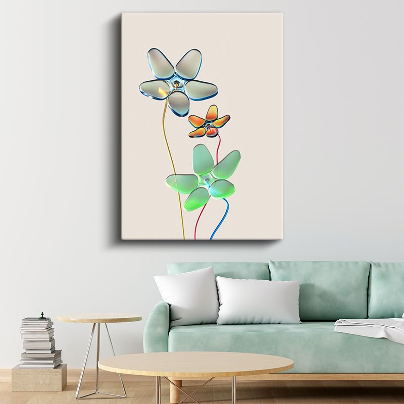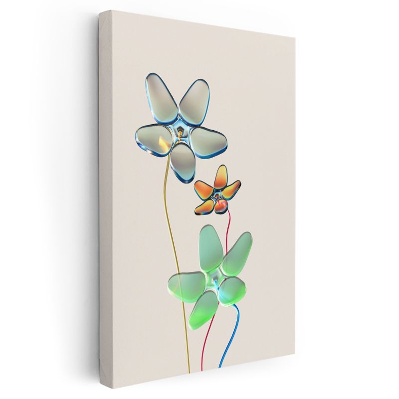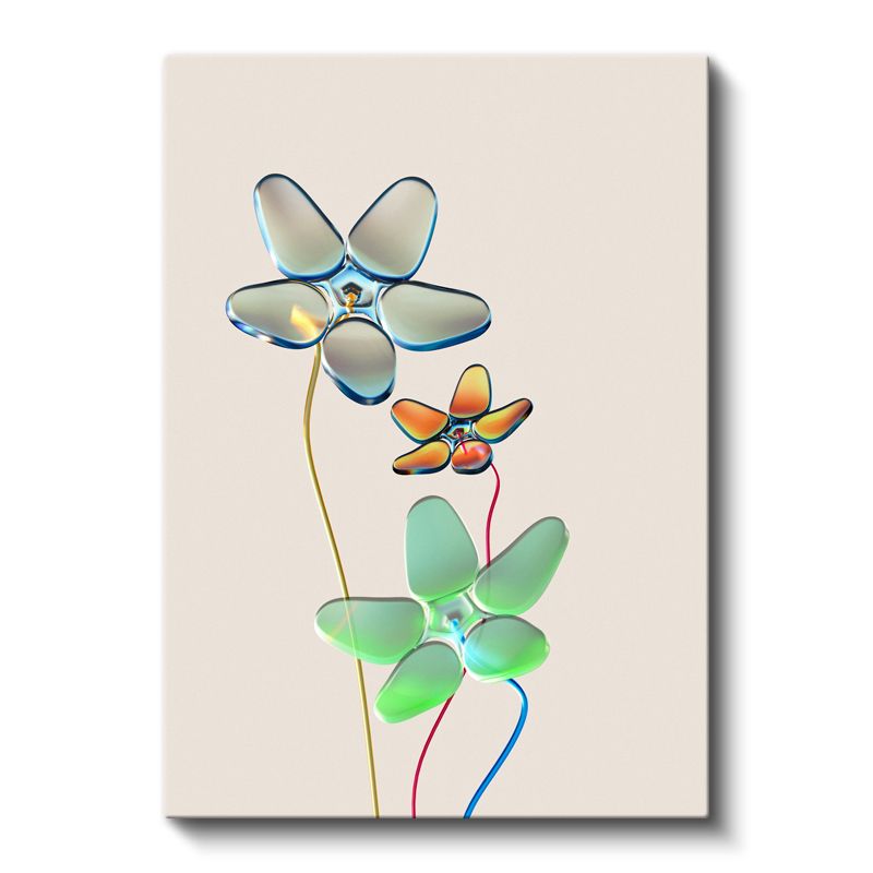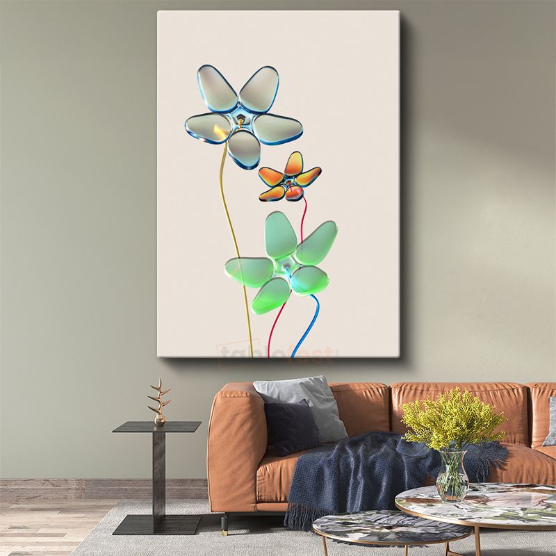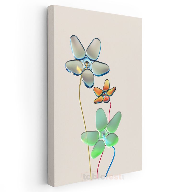 Kristal Çiçekler - Şeffaf Cam Efektli Minimalist Kompozisyon Kanvas Tablo