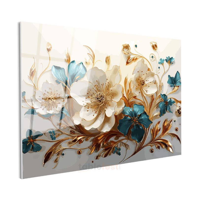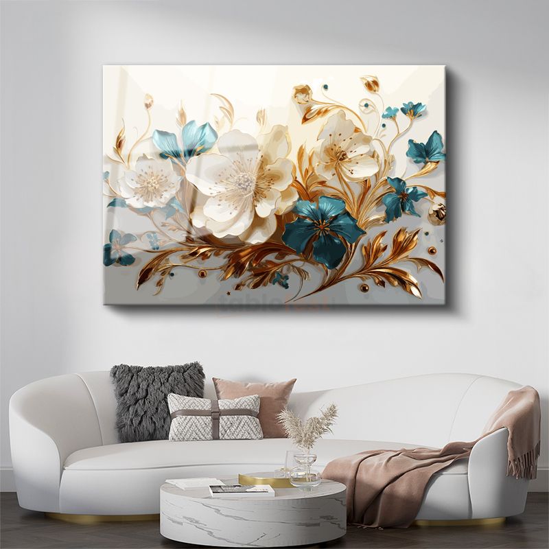 Kristal Damlalar - Makro Çekim Ayçiçeği Detayı Cam Tablo