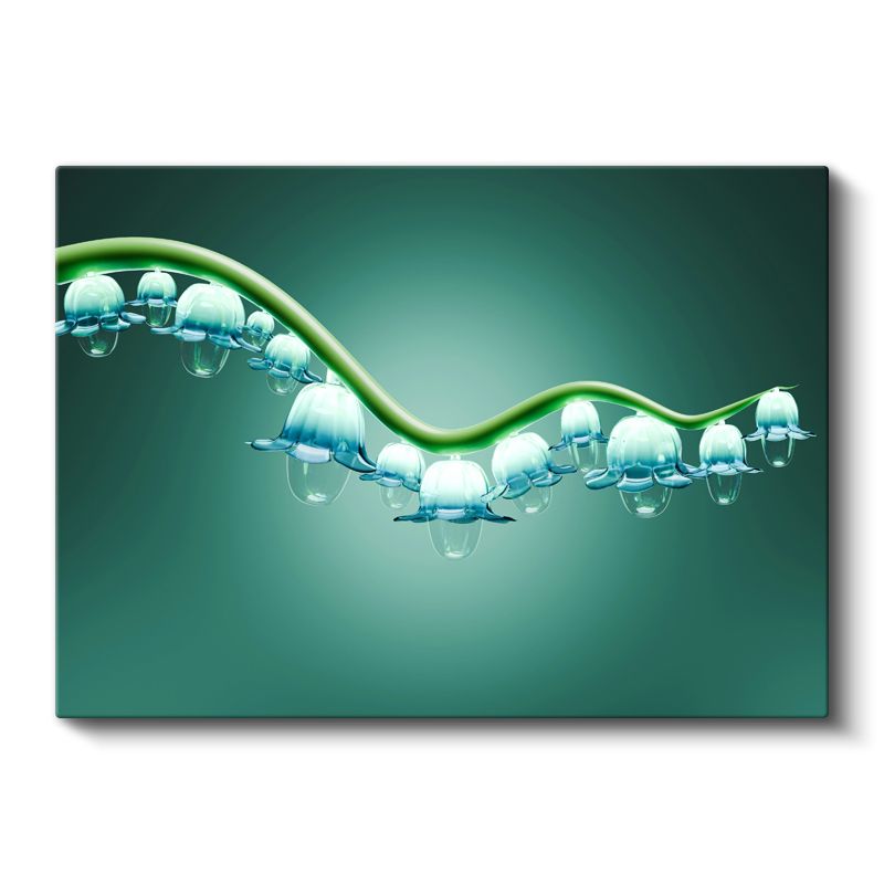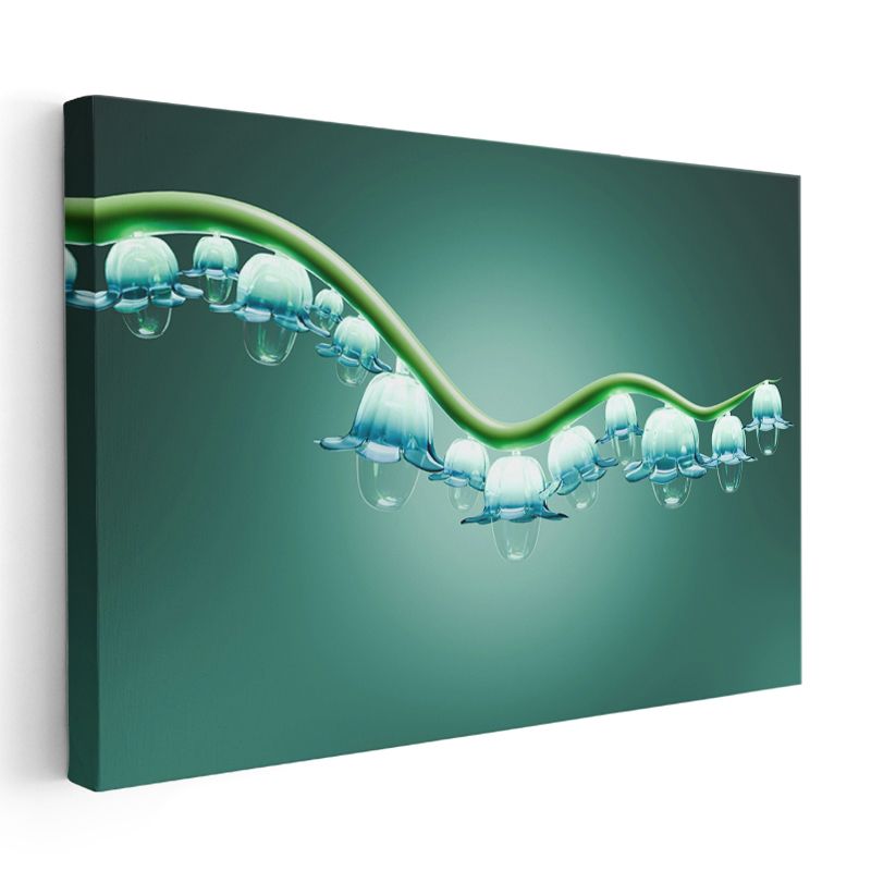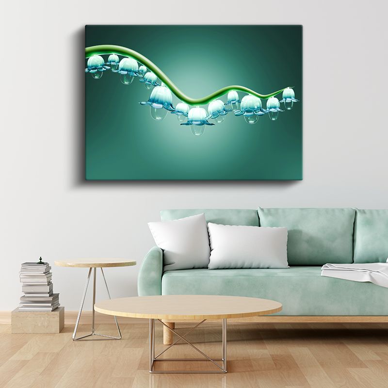 Kristal Damlalar - Yeşil Dalda Mavi Şeffaf Formlar Kanvas Tablo
