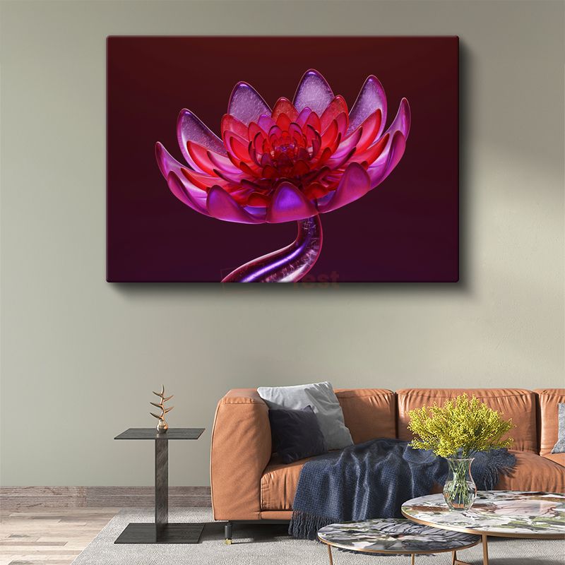 Kristal Lotus - Parlak Çiçek Vektörel Kanvas Tablo