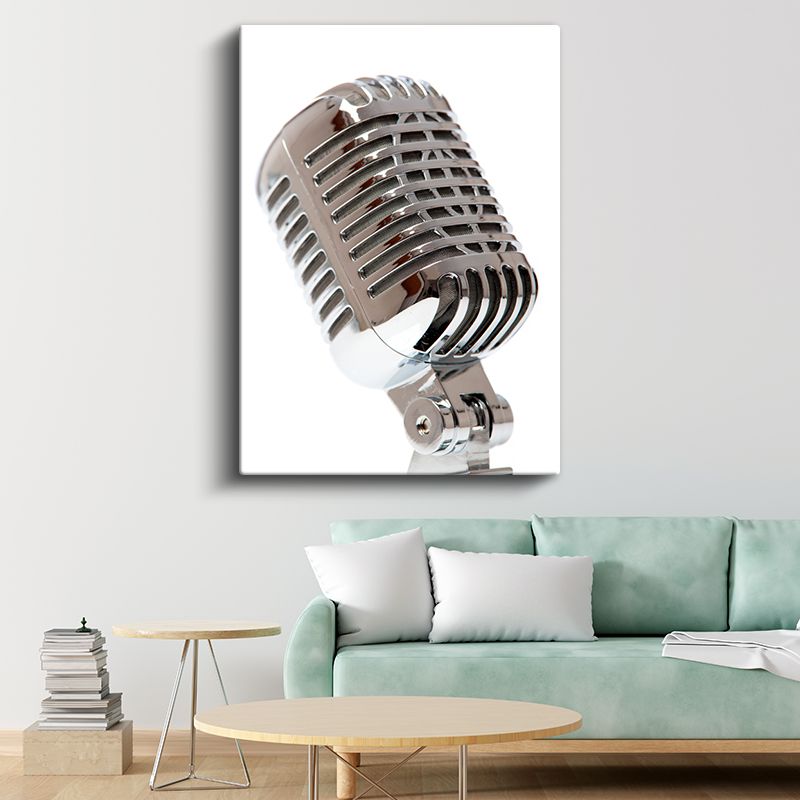 Krom Mikrofon - Parlak Metal Detaylı Ses Ekipmanı Kanvas Tablo