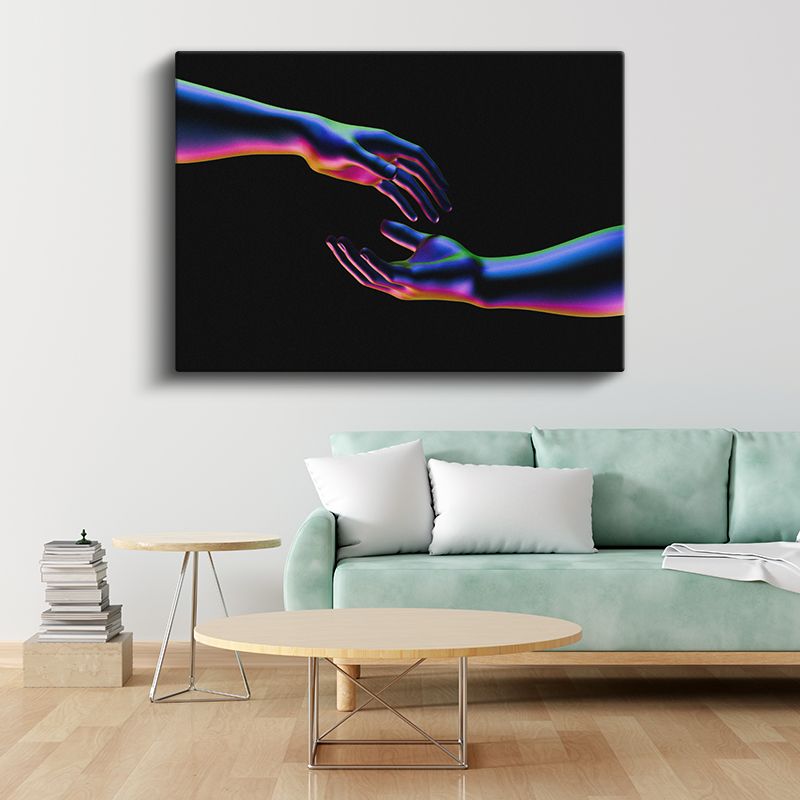 Kromatik Dokunuş - Neon Renkli Eller Soyut Kanvas Tablo