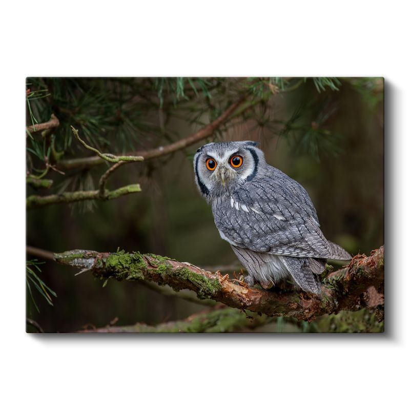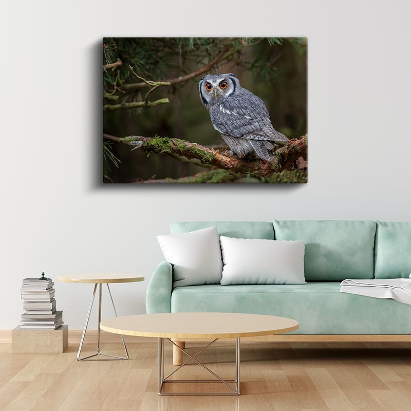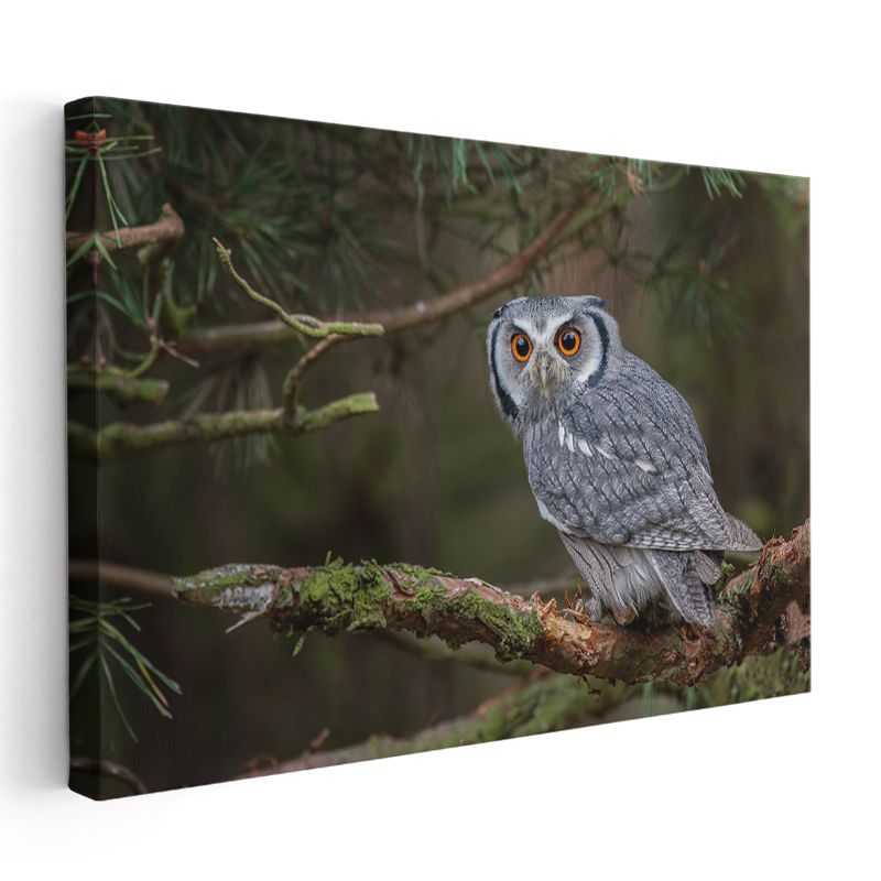 Küçük Baykuş - Çam Dalında Meraklı Bakışlar Kanvas Tablo