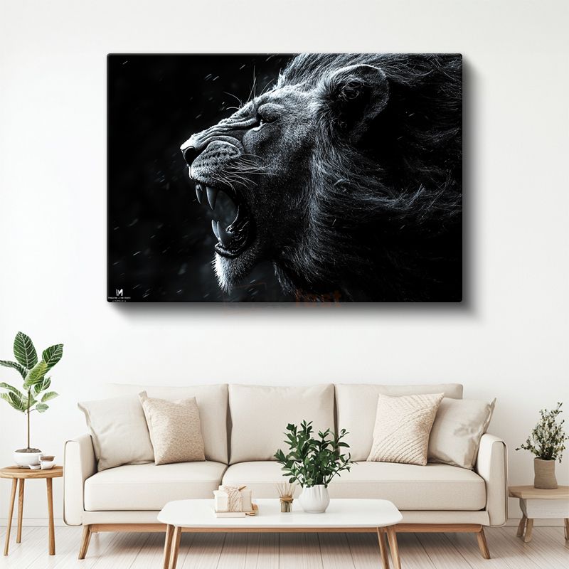 Kükreyen Aslan - Karanlıkta Yankılanan Güç Kanvas Tablo
