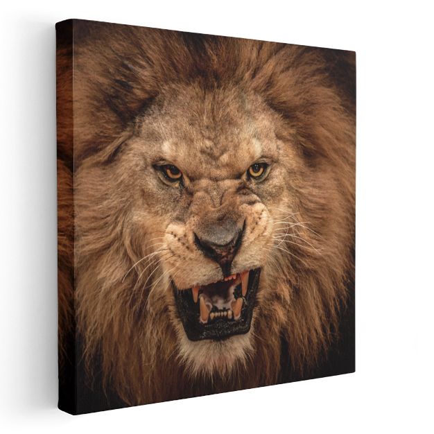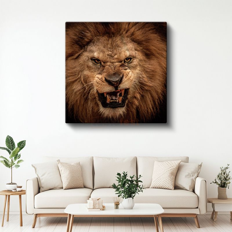 Kükreyen Aslan - Ormanlar Kralının Güçlü Portresi Kanvas Tablo
