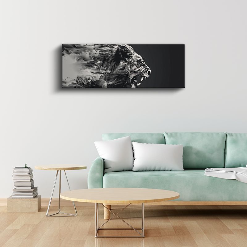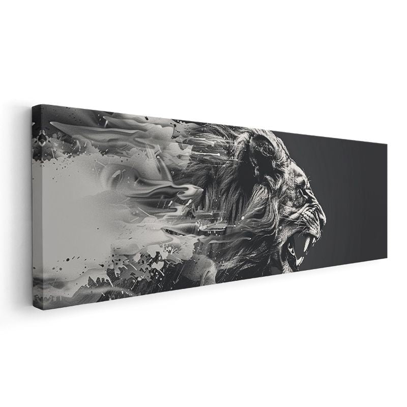 Kükreyen Aslan - Sanatsal Siyah Beyaz Aslan Portresi Kanvas Tablo