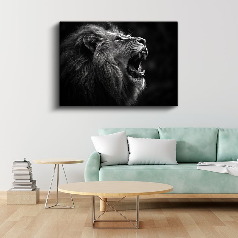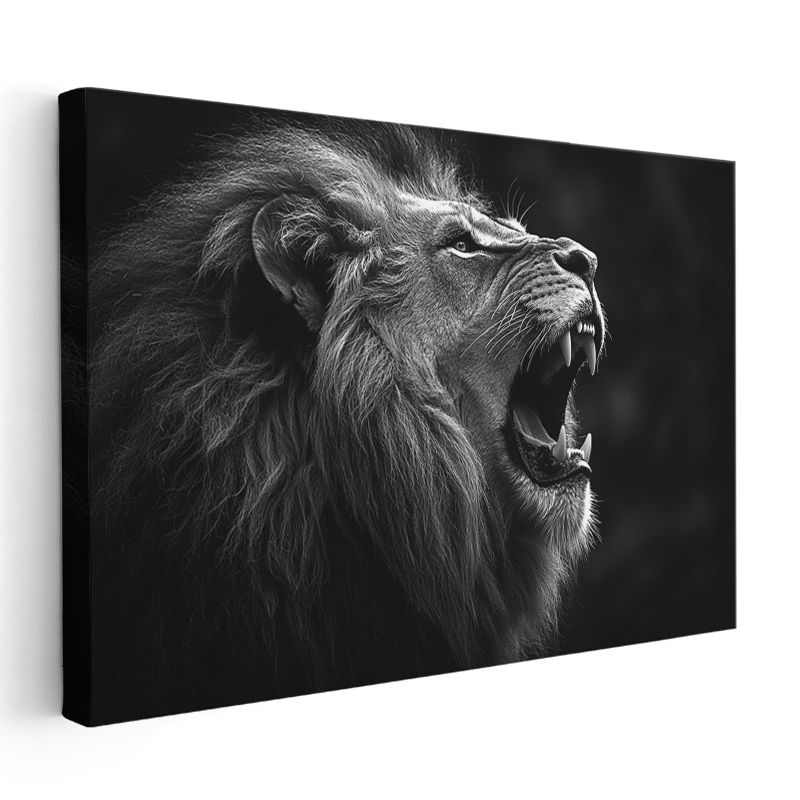 Kükreyen Aslan - Siyah Beyaz Güç Portresi Kanvas Tablo