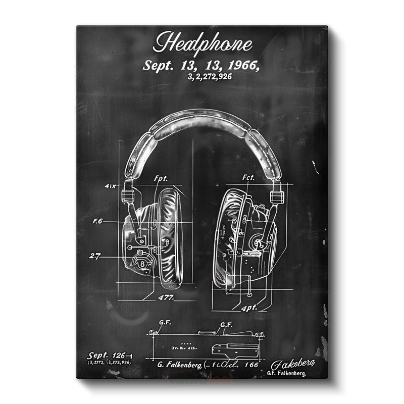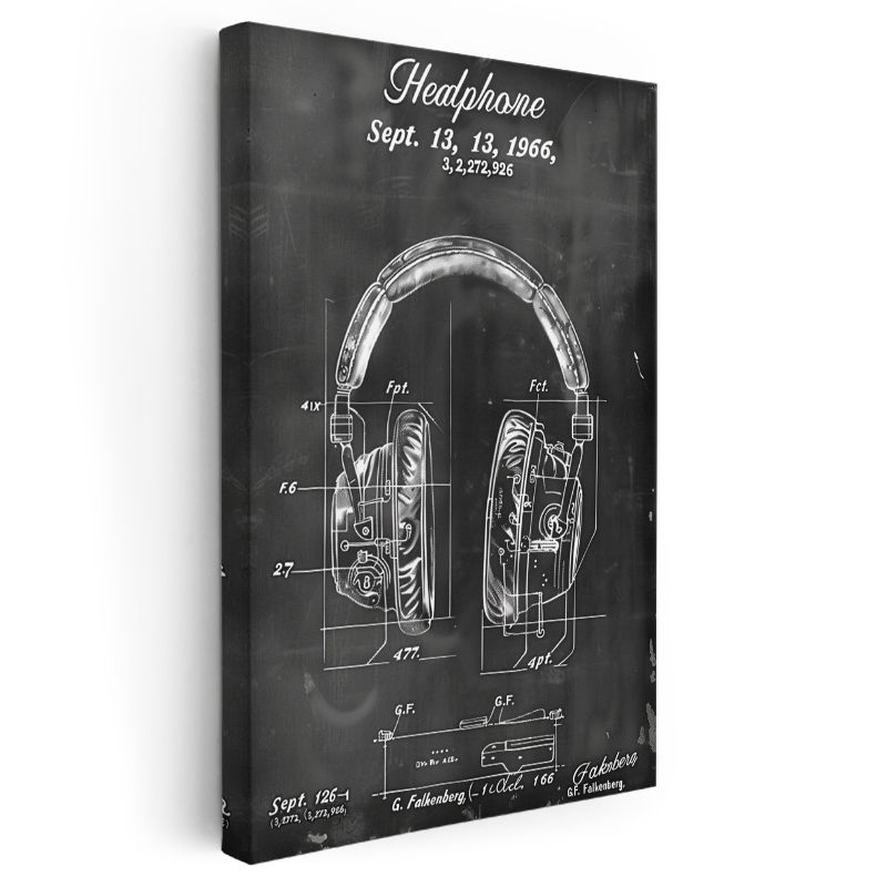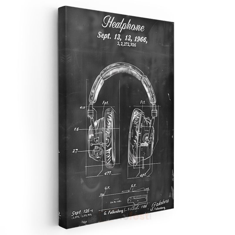 Kulaklık Patent Çizimi - 1966 Tarihli Teknik İllüstrasyon Kanvas Tablo