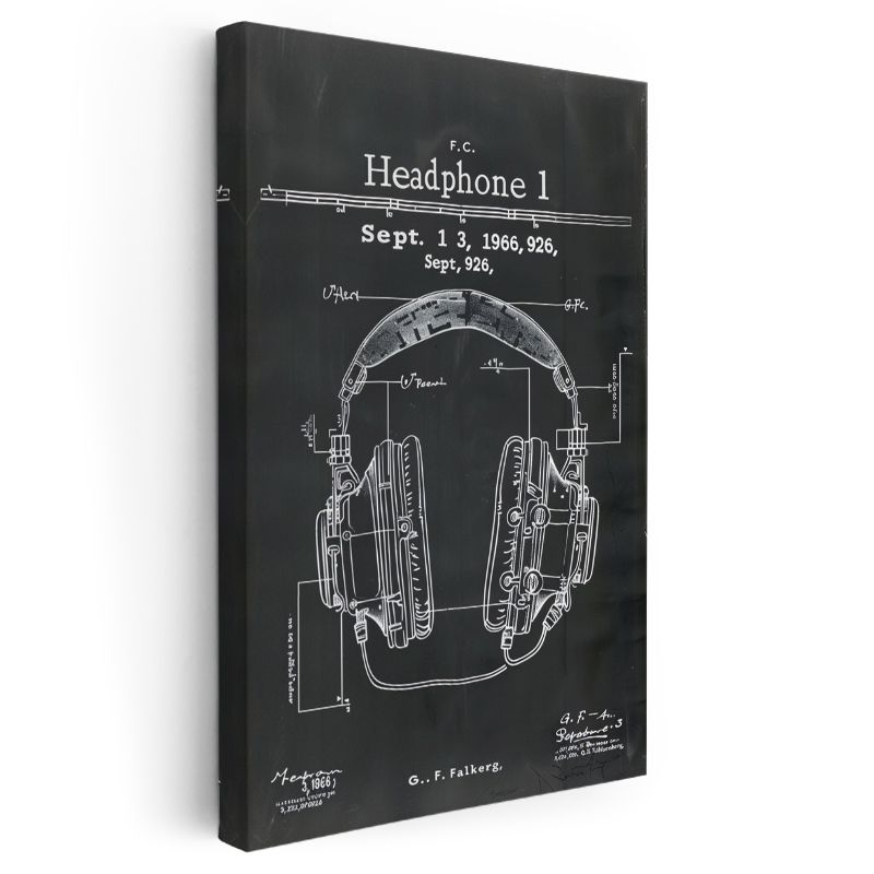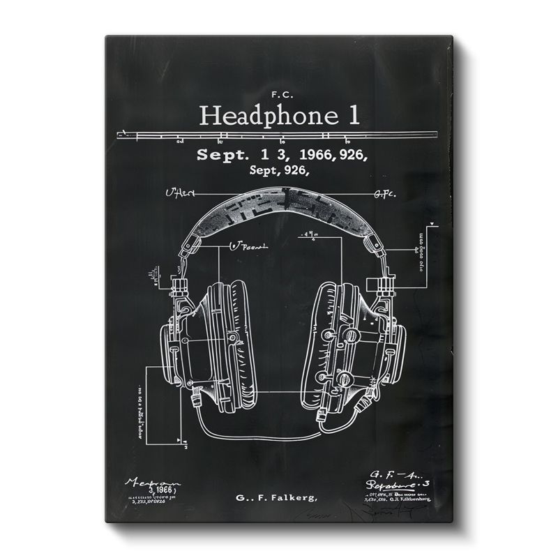 Kulaklık Patenti - 1966 Tarihli Retro Müzik Ekipmanı Kanvas Tablo