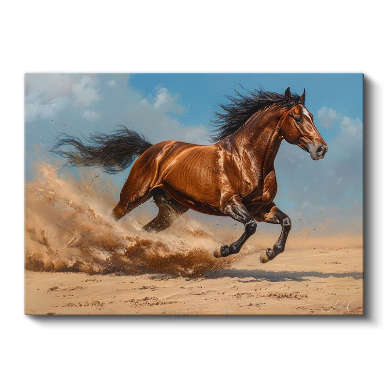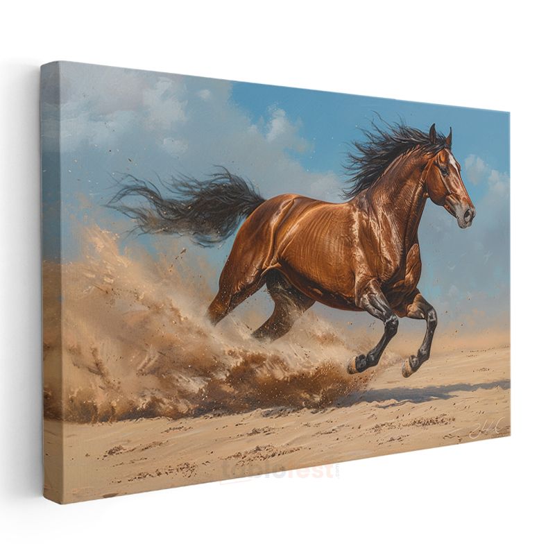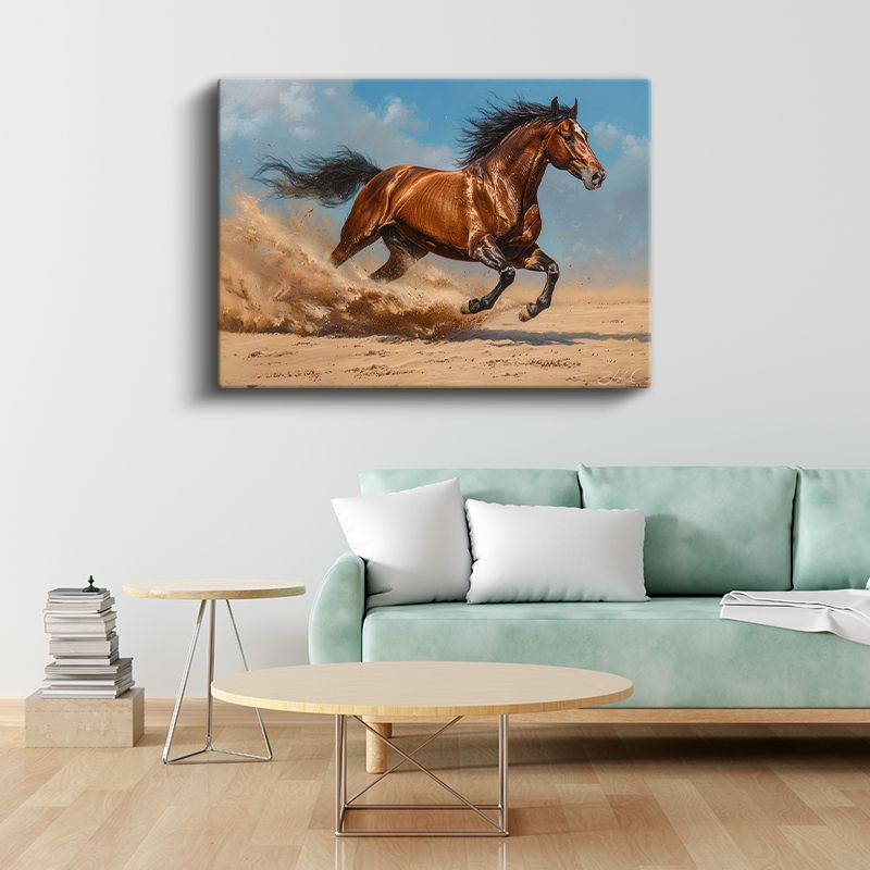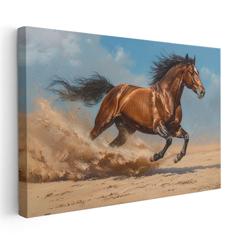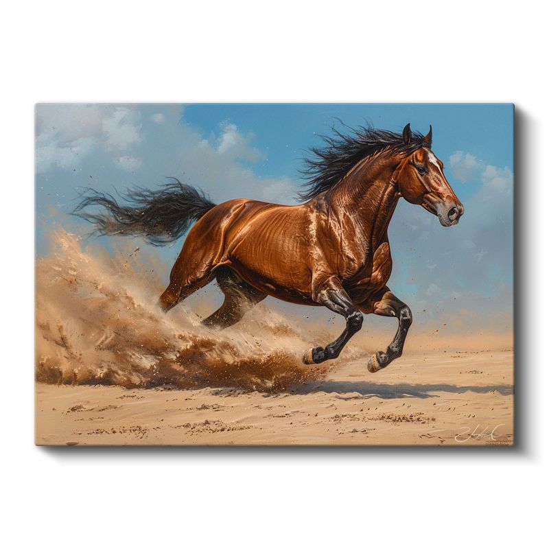 Kumsal Koşusu - Kahverengi Atın Hızlı Adımları Kanvas Tablo