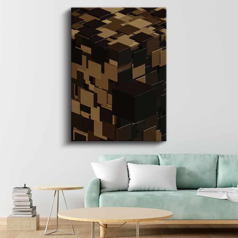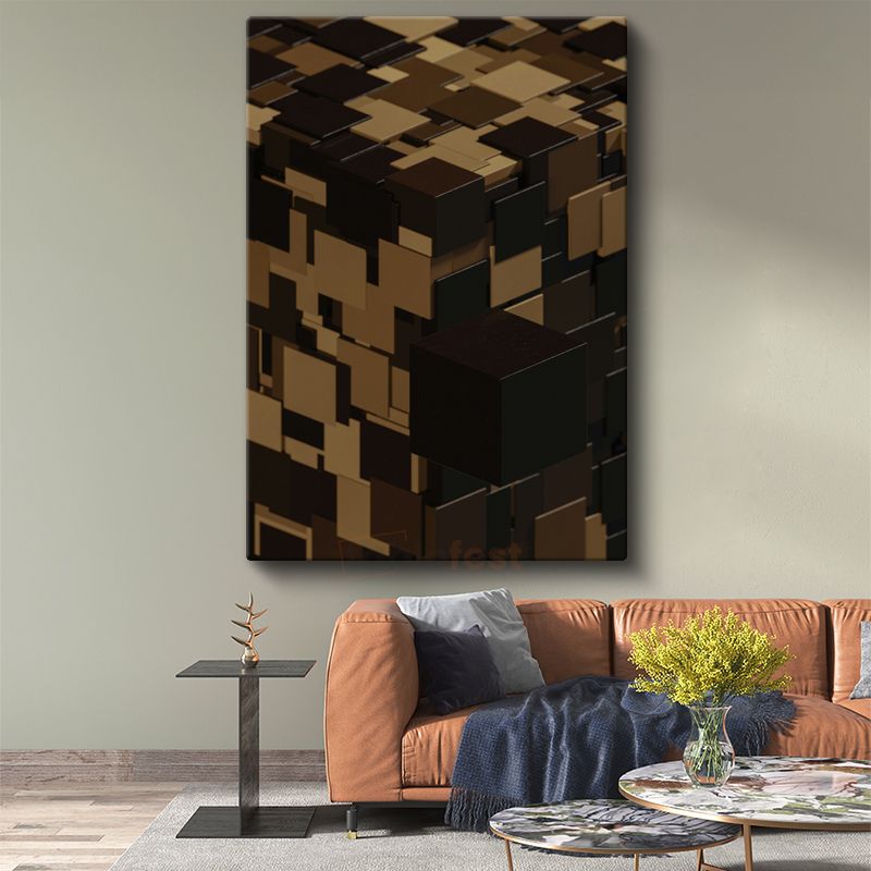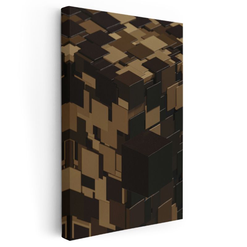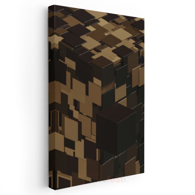 Küp Bileşimi - Kahverengi Tonlarda Geometrik Vektörel Tasarım Kanvas Tablo