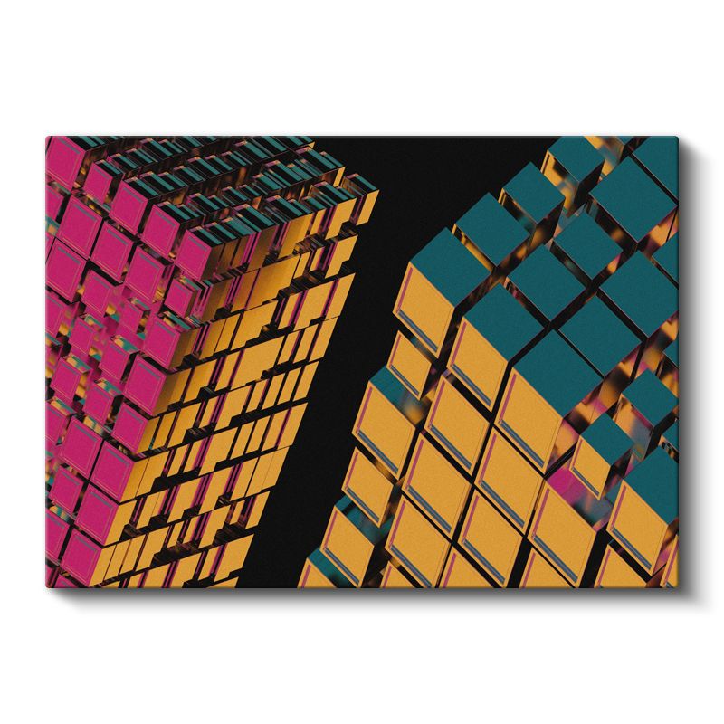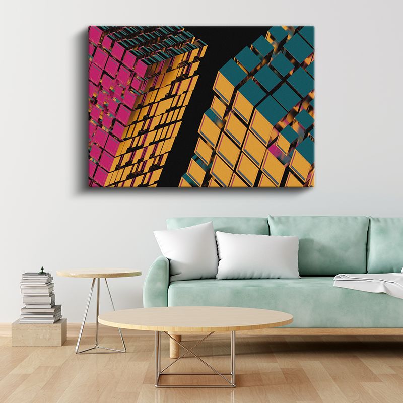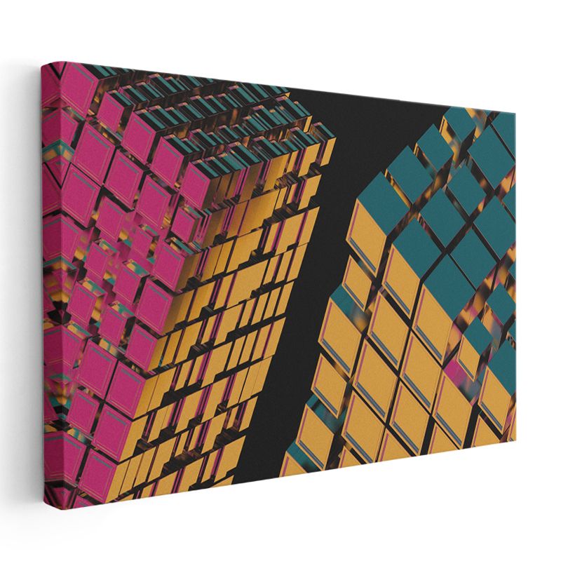 Küp Mimarisi - Canlı Renkli 3D Yapı Kanvas Tablo