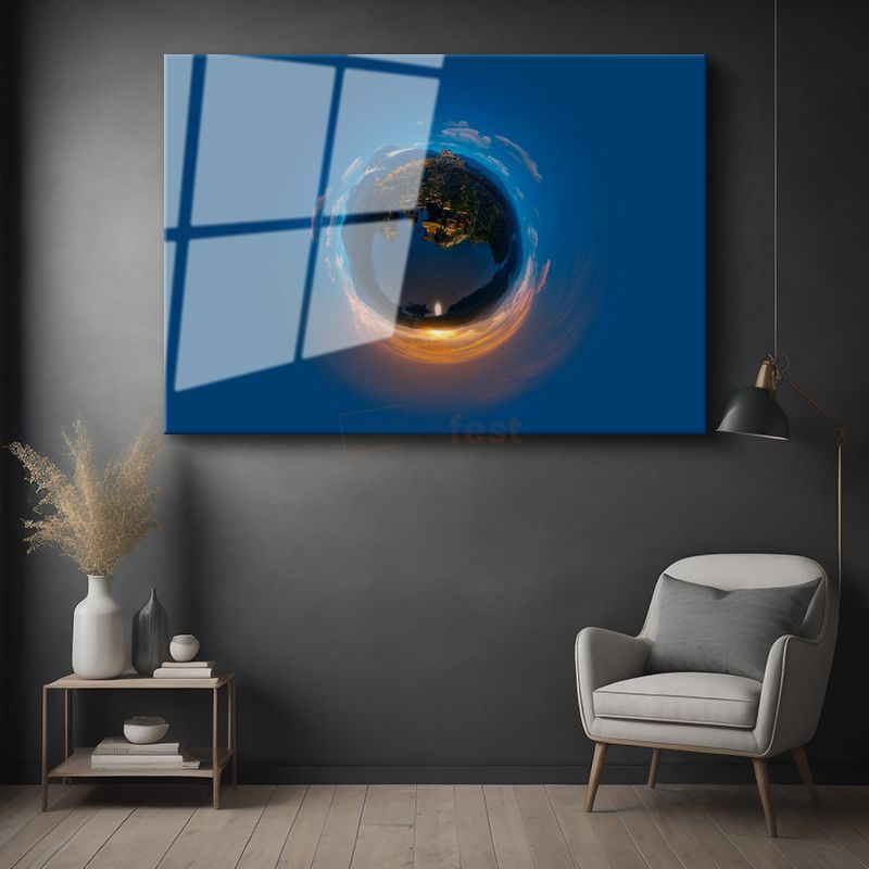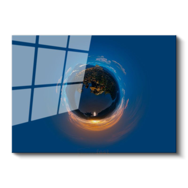 Küresel Manzara - Gün Batımında Dünya Panoraması Cam Tablo