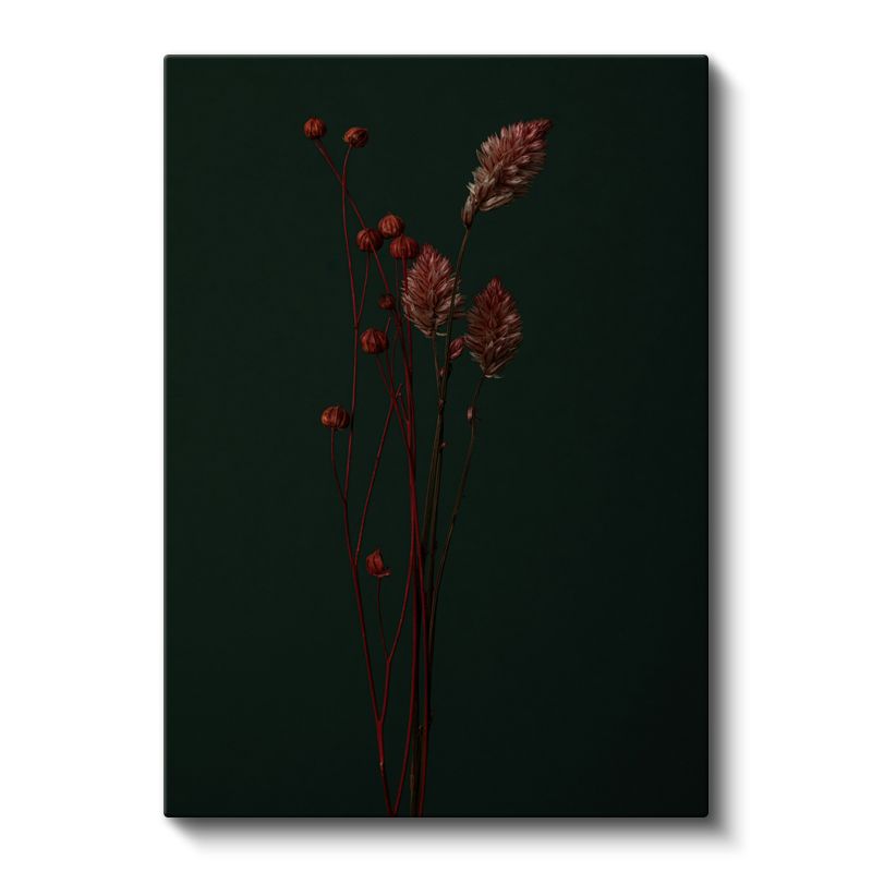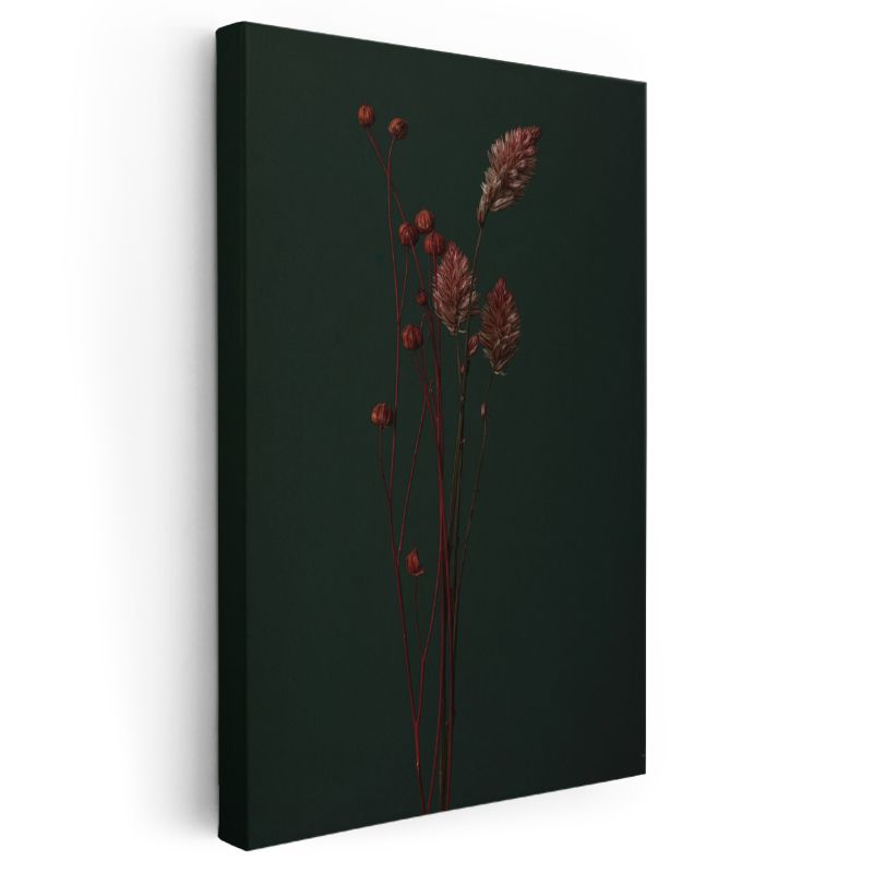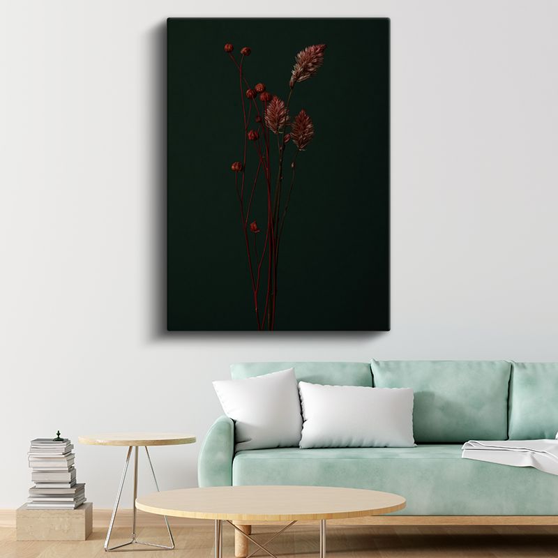 Kuru Çiçekler - Koyu Zeminde Dekoratif Bitki Siluetleri Kanvas Tablo