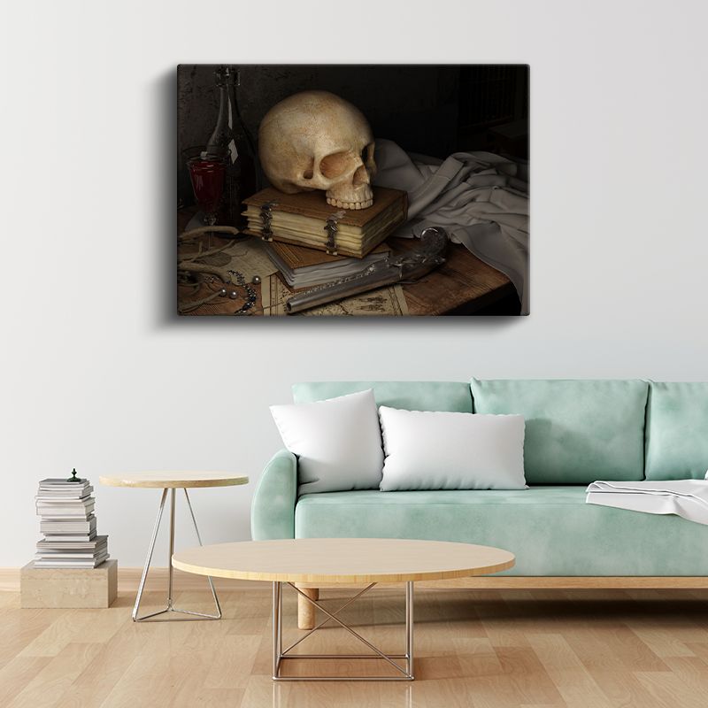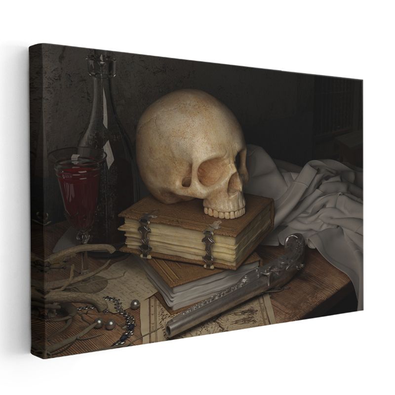 Kurukafa Natürmort - Antik Kitaplar ve Esrarengiz Objeler Kanvas Tablo