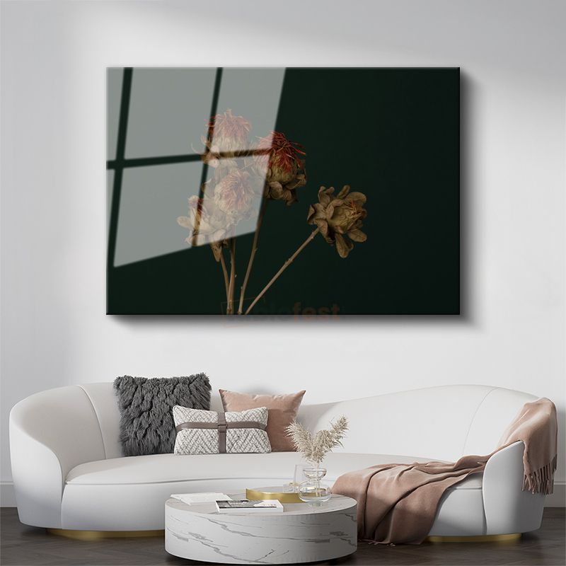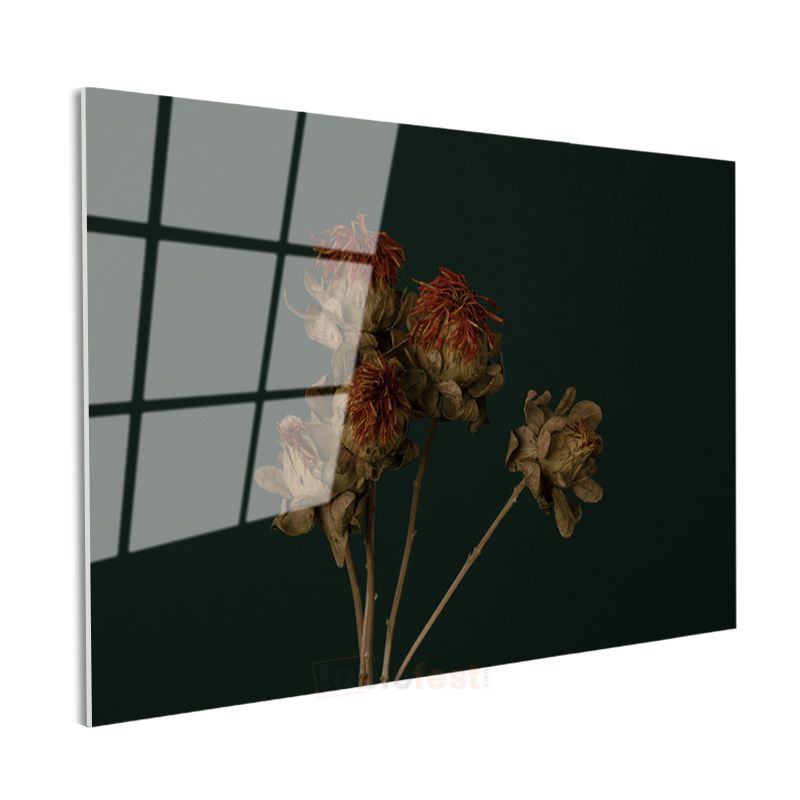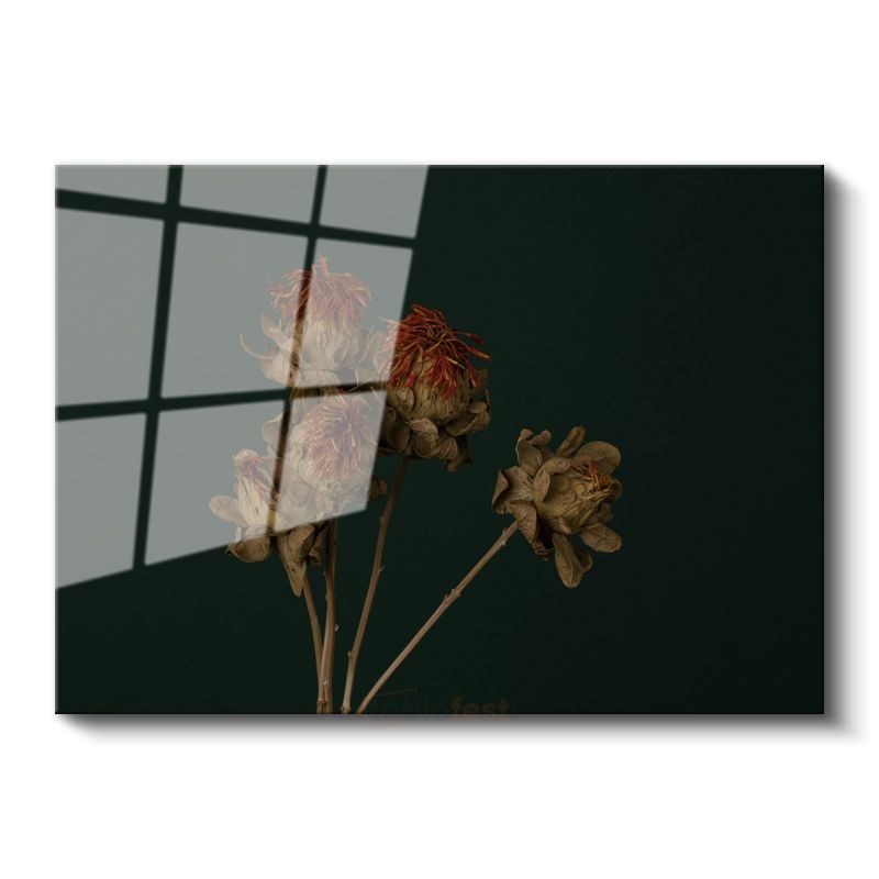 Kurumuş Çiçekler - Koyu Fonlu Vintage Cam Tablo