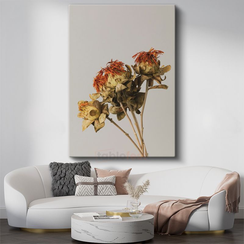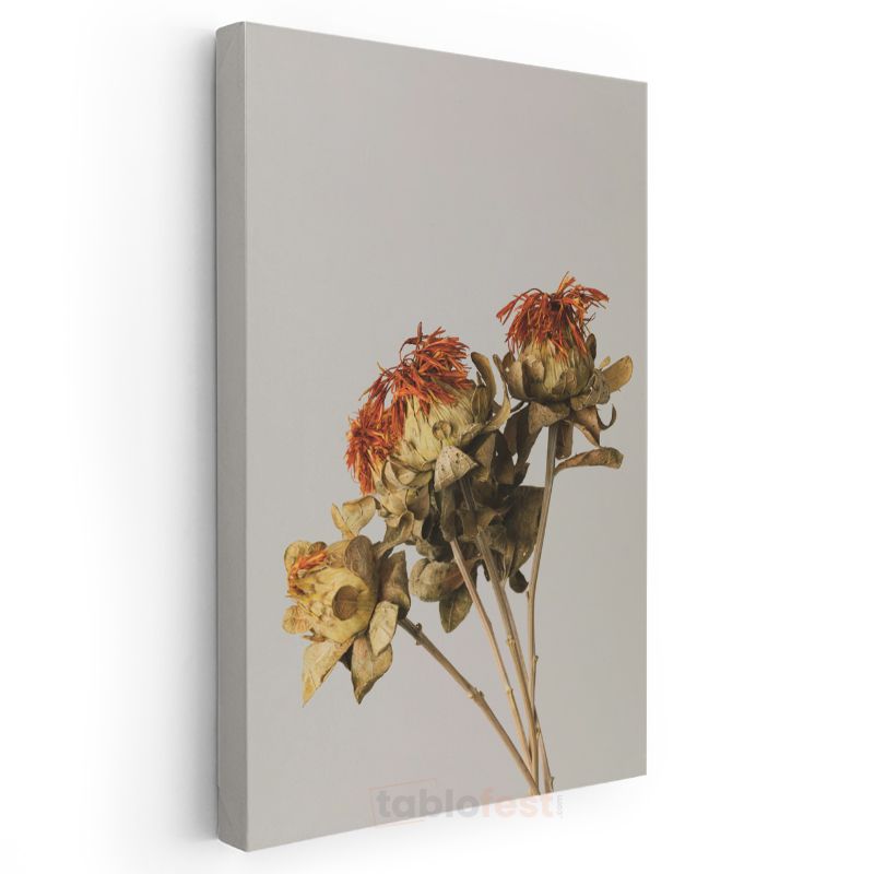 Kurumuş Çiçekler - Nostaljik Turuncu Detaylı Botanik Kanvas Tablo