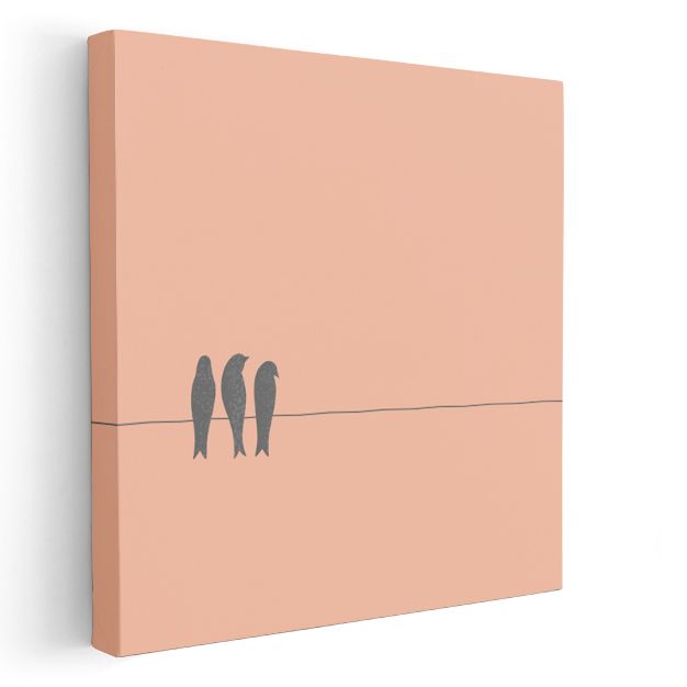 Kuş Dostlar - Minimalist Tel Üstünde Kuşlar Kanvas Tablo