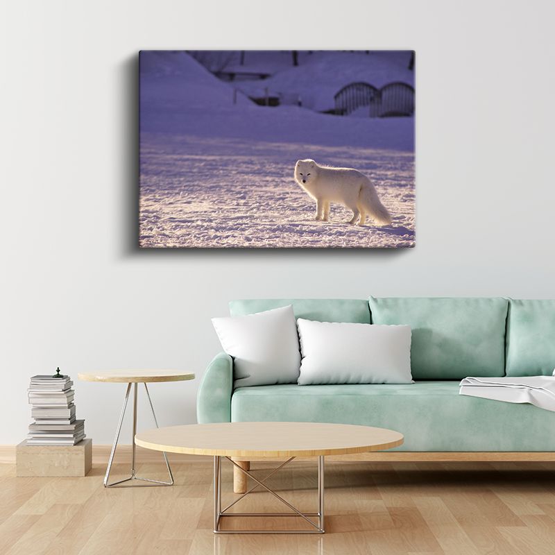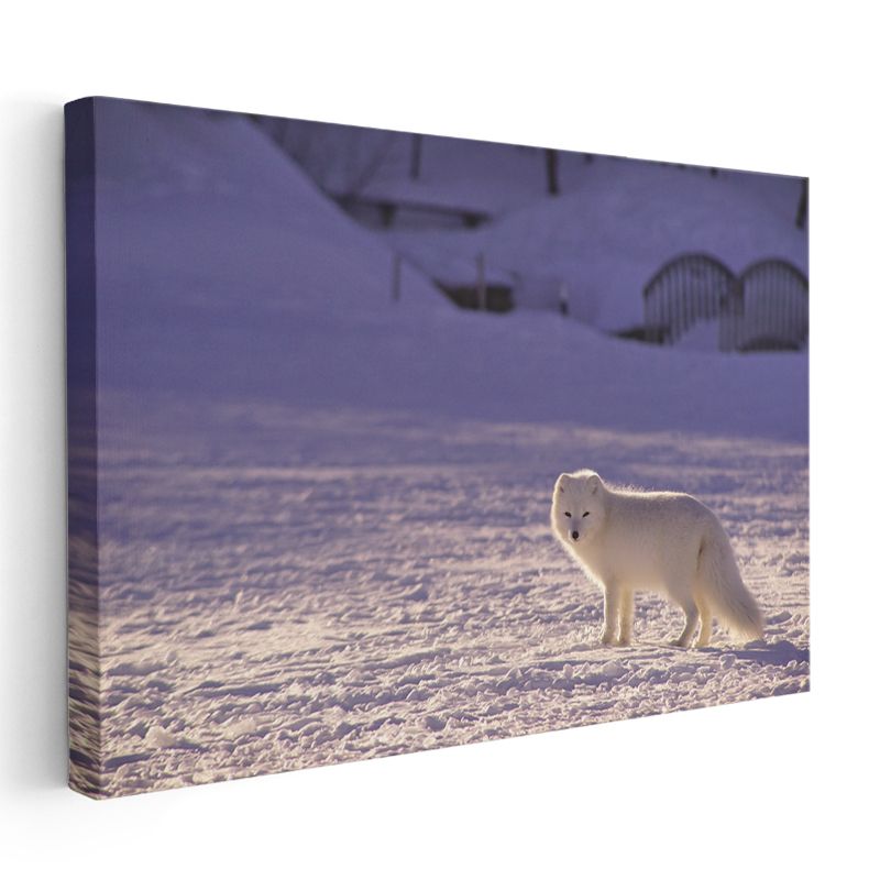 Kutup Tilkisi - Karlı Arazide Beyaz Avcı Kanvas Tablo