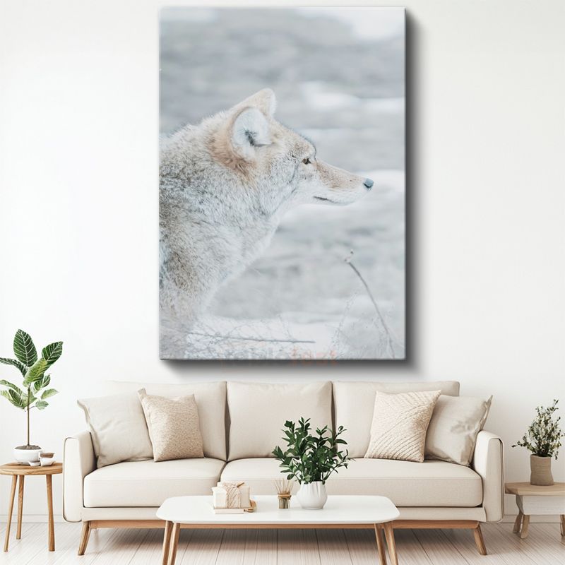 Kutup Tilkisi - Karlı Manzarada Beyaz Tüylü Bakış Kanvas Tablo
