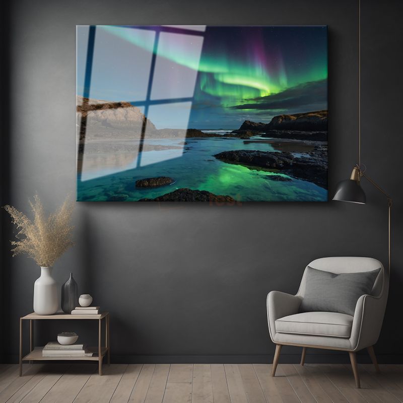 Kuzey Işıkları - Büyüleyici Gökyüzü Dansı Cam Tablo