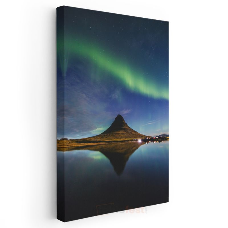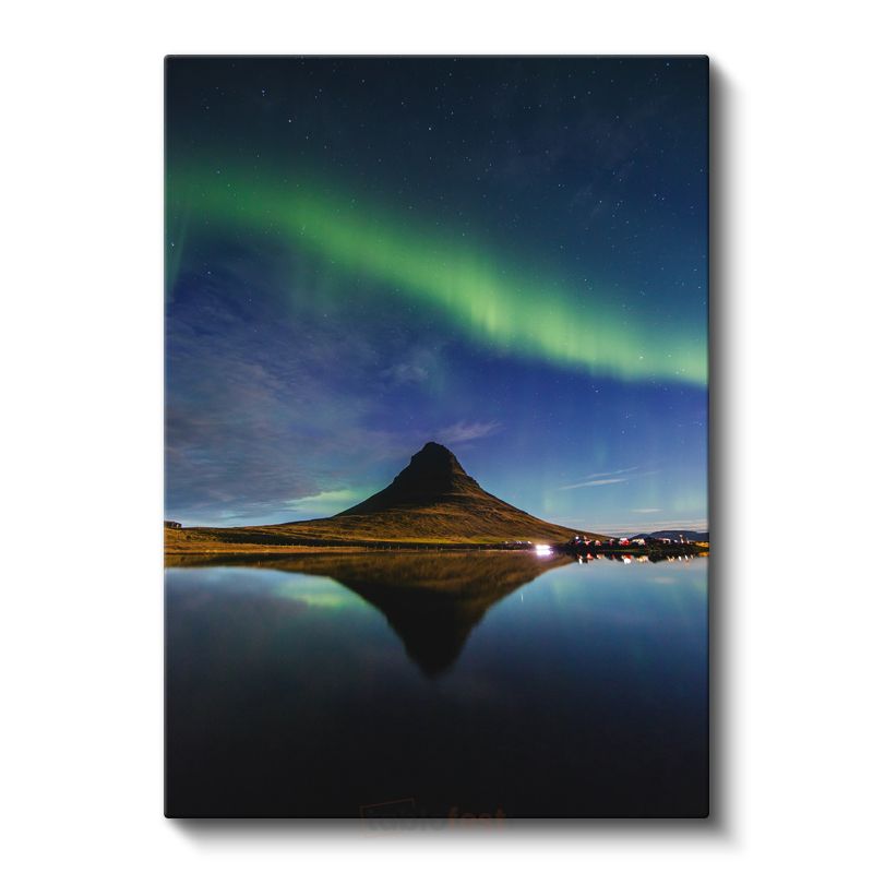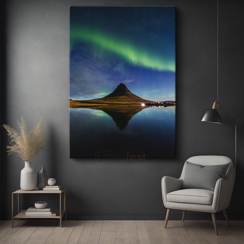 Kuzey Işıkları - Dağ Silüeti ve Gökyüzü Dansı Kanvas Tablo
