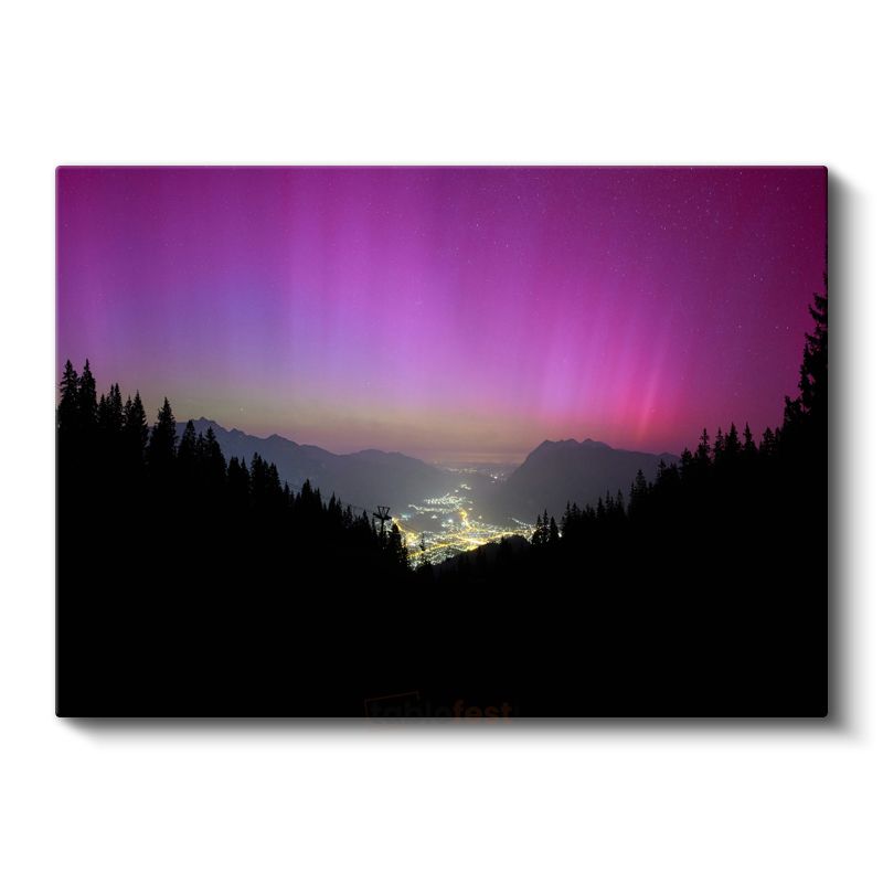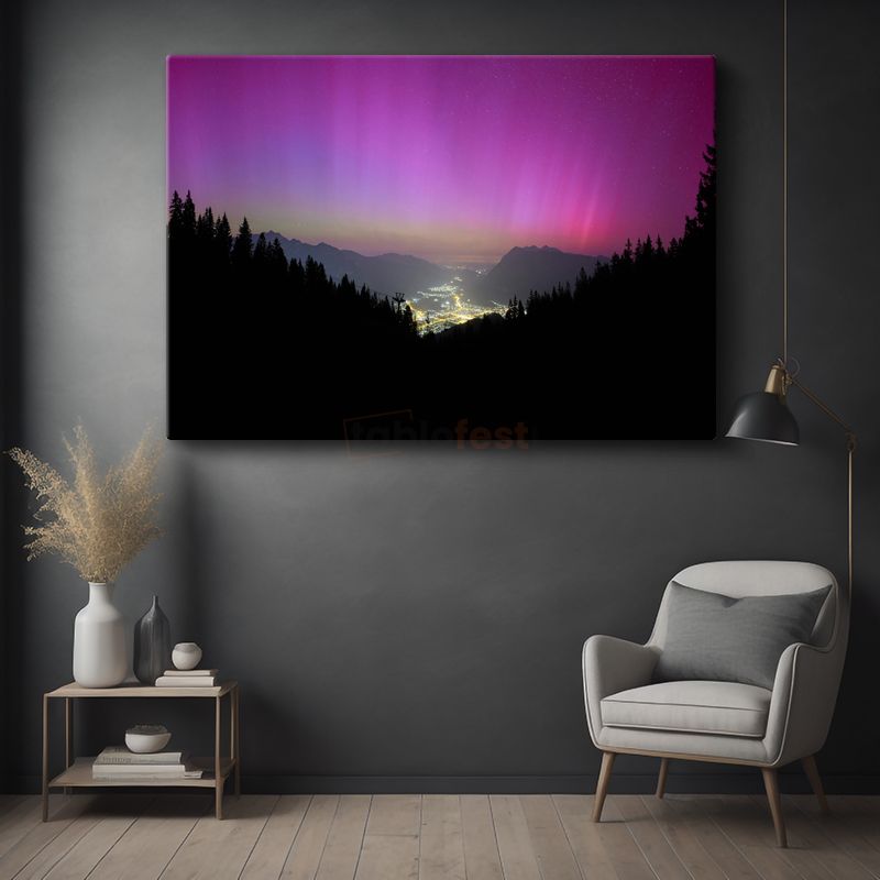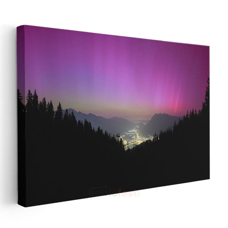 Kuzey Işıkları - Dağlar Üzerinde Büyüleyici Mor Işıltılar Kanvas Tablo