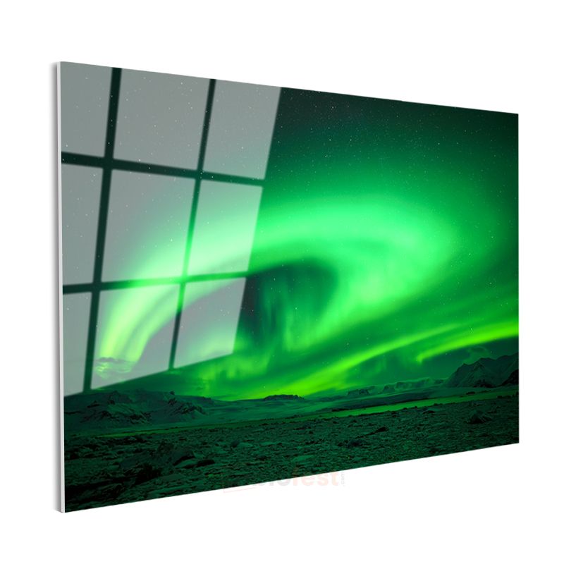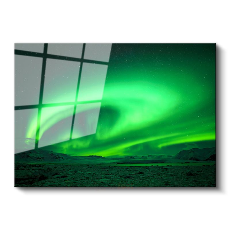 Kuzey Işıkları - Gökyüzünü Aydınlatan Yeşil Aurora Dansı Cam Tablo