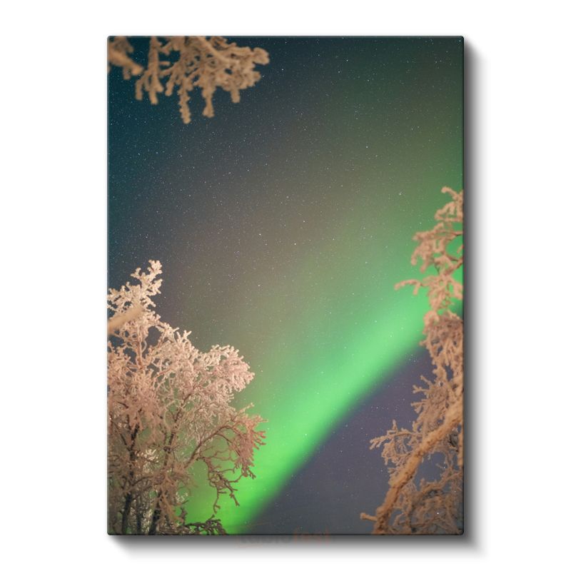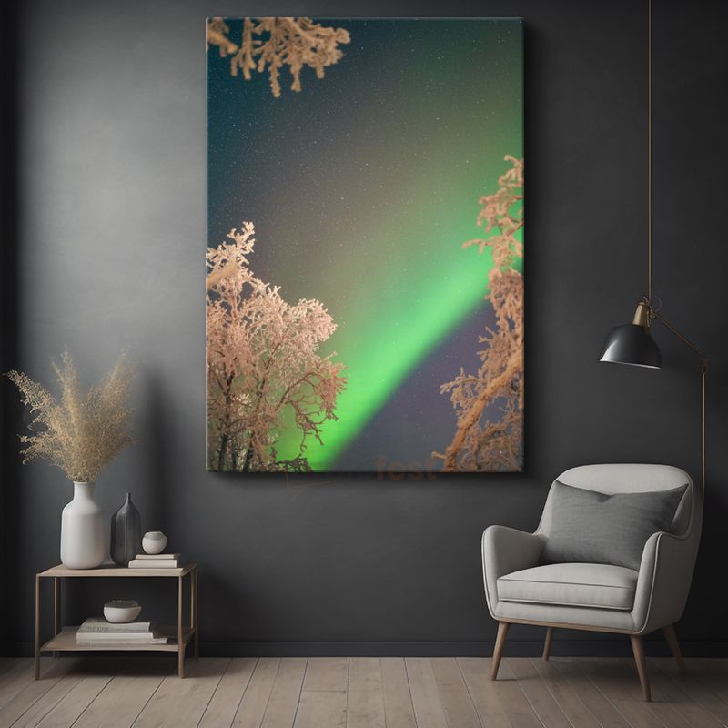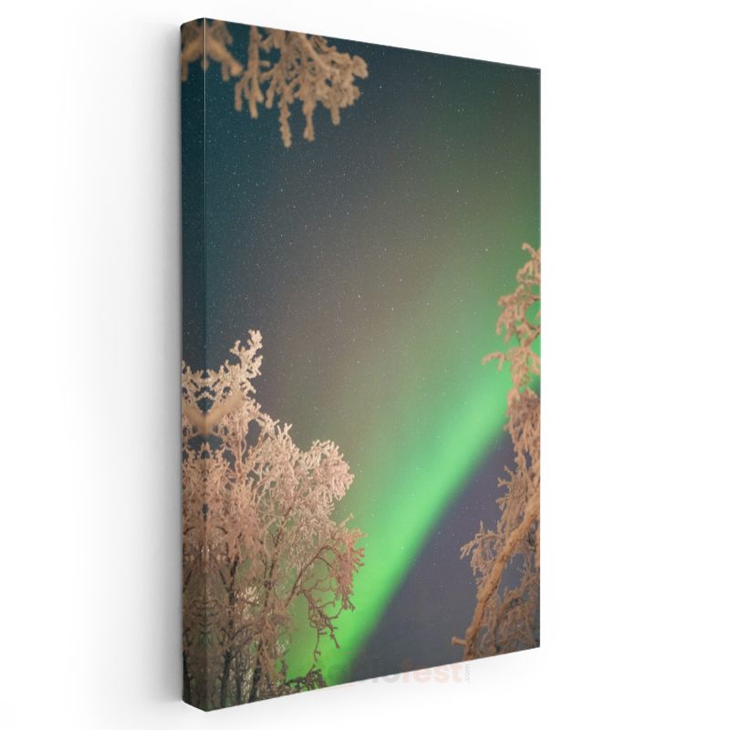 Kuzey Işıkları - Karlı Ağaçlar Arasında Aurora Kanvas Tablo