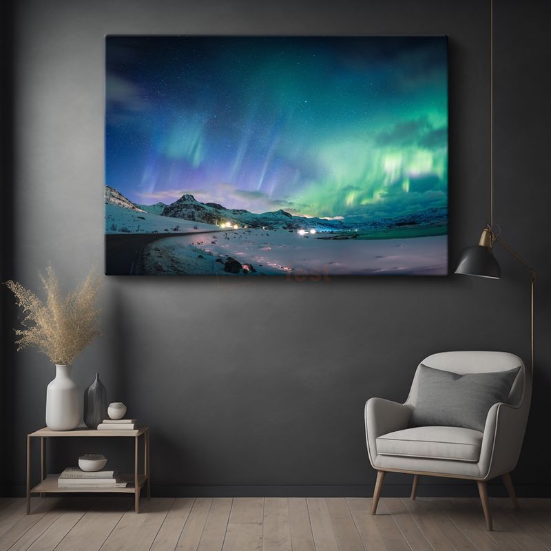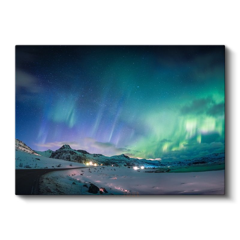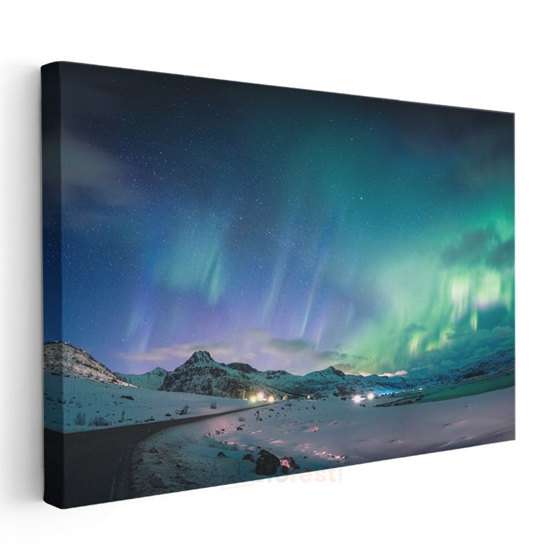Kuzey Işıkları - Karlı Dağ Silüeti Kanvas Tablo