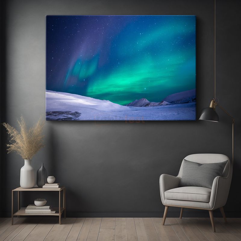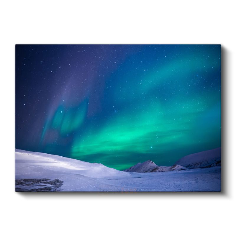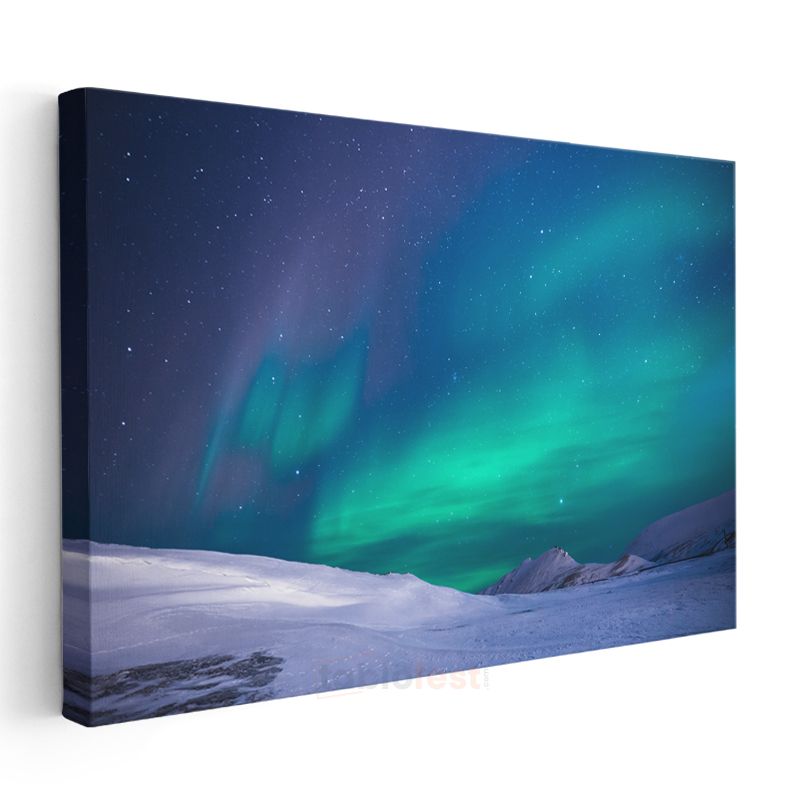Kuzey Işıkları - Karlı Dağlar Üzerinde Dans Eden Gökyüzü Şöleni Kanvas Tablo