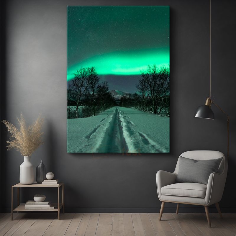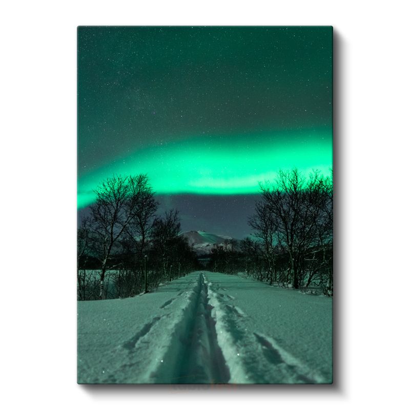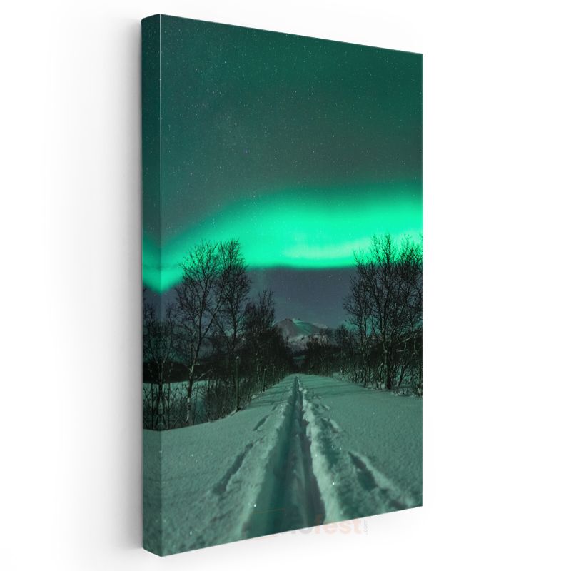 Kuzey Işıkları - Karlı Patika Kanvas Tablo