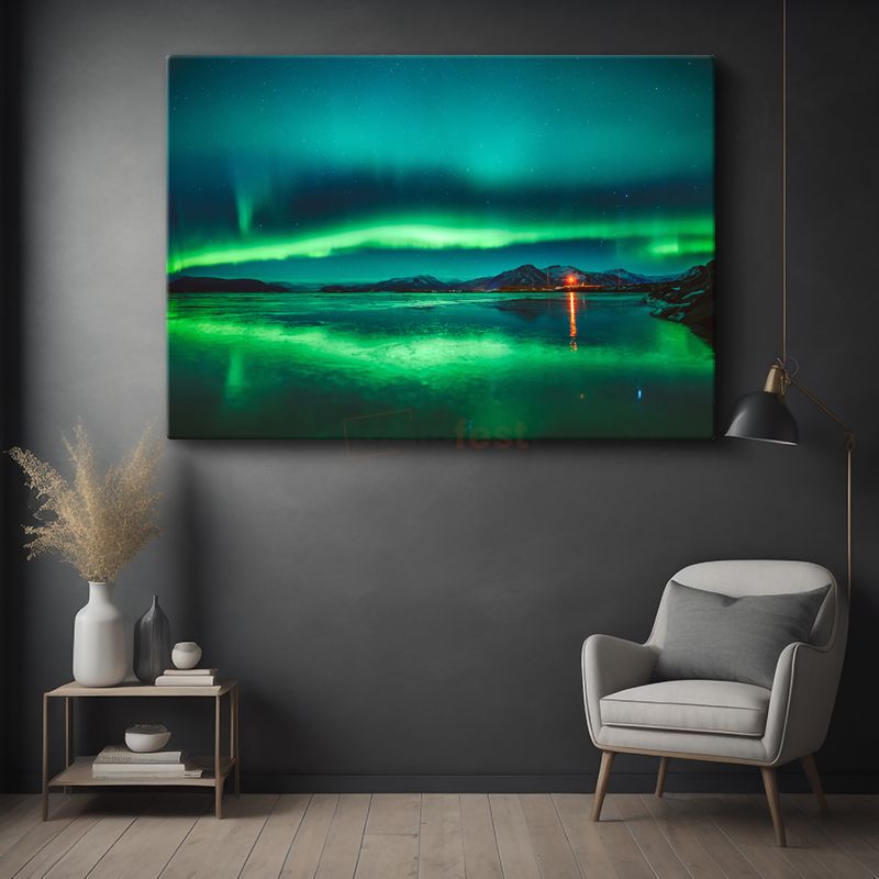 Kuzey Işıkları - Yeşil Gökyüzü Dansı Kanvas Tablo