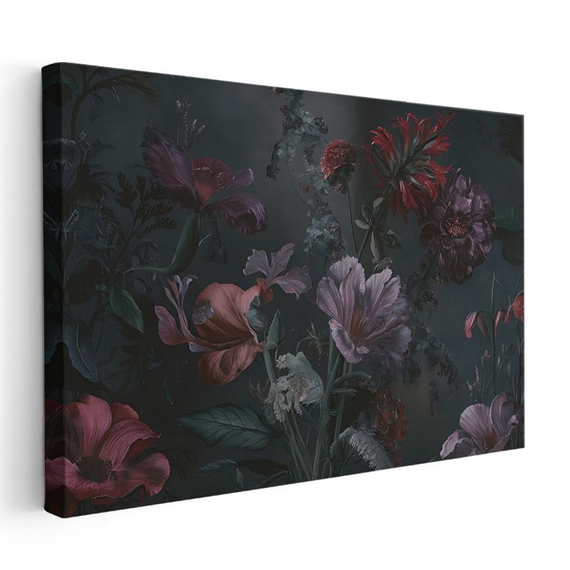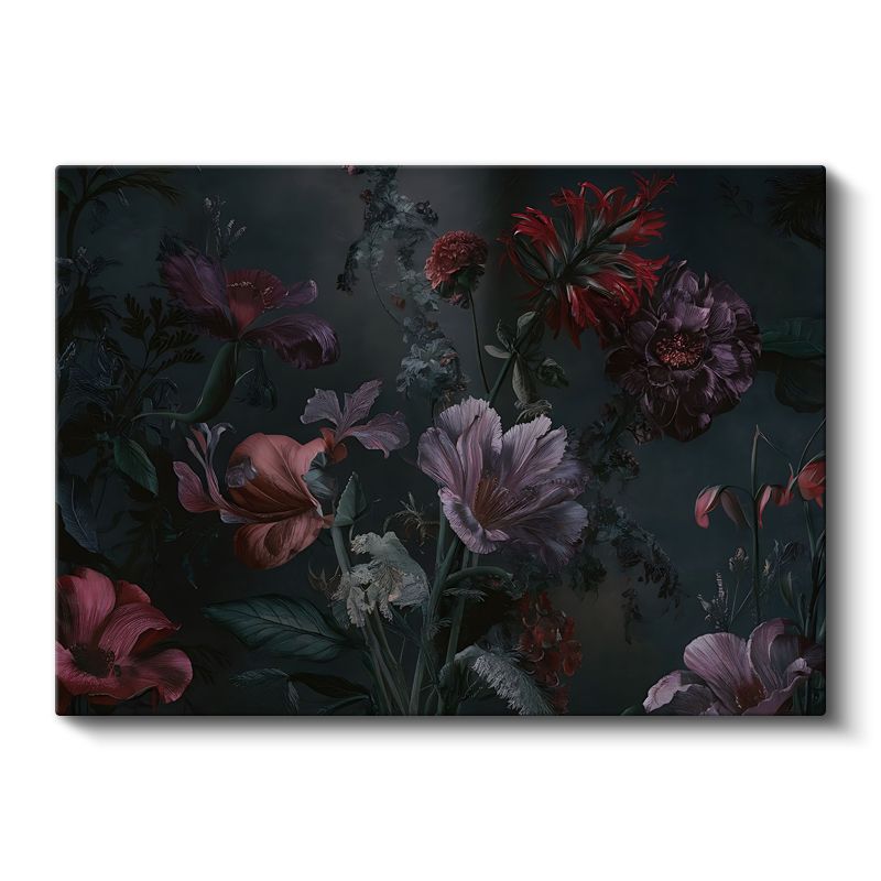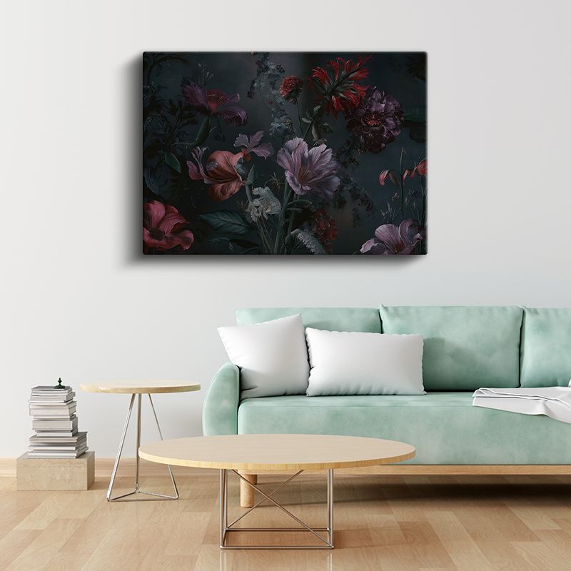 Lacivert Çiçek - Altın Yapraklı Lüks Çiçek Tasarımı Kanvas Tablo