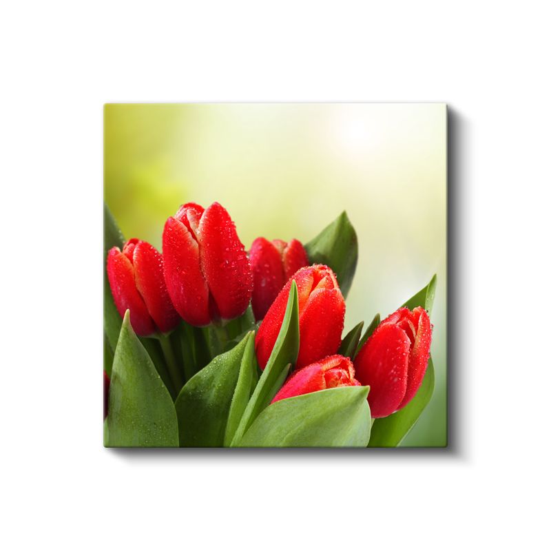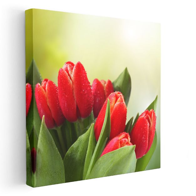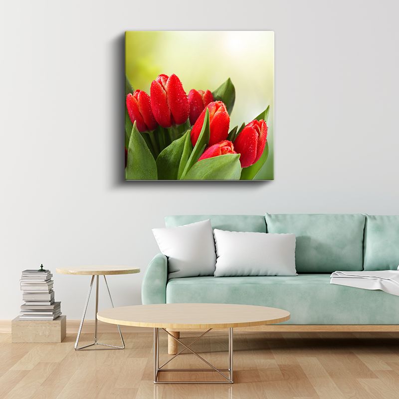 Lale Buketi - Yeşil Yapraklar Arasında Kırmızı Çiçekler Kanvas Tablo