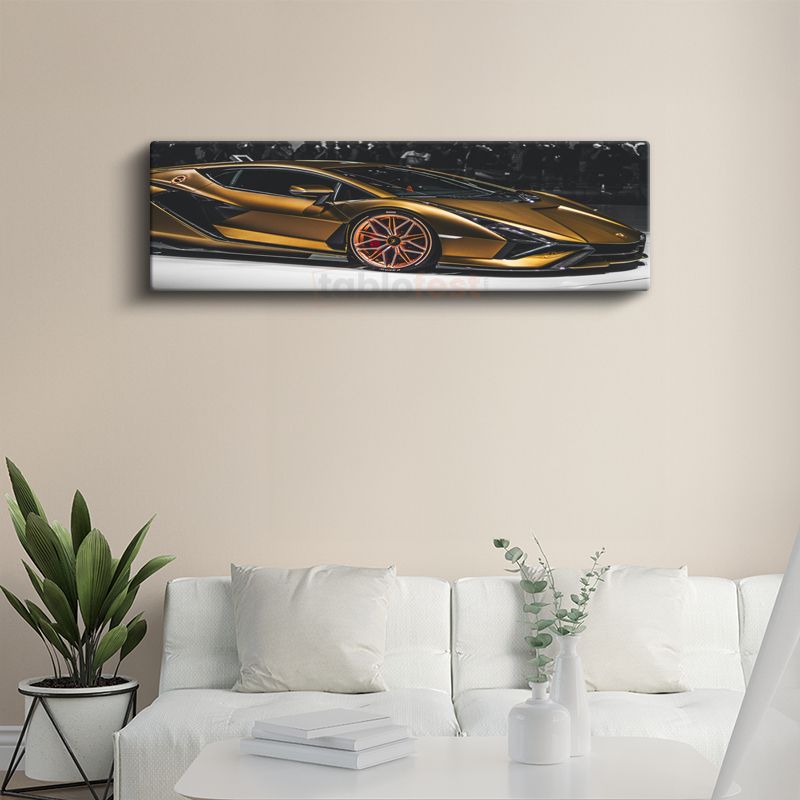 Lamborghini - Altın Rengi Lüks Spor Kanvas Tablo
