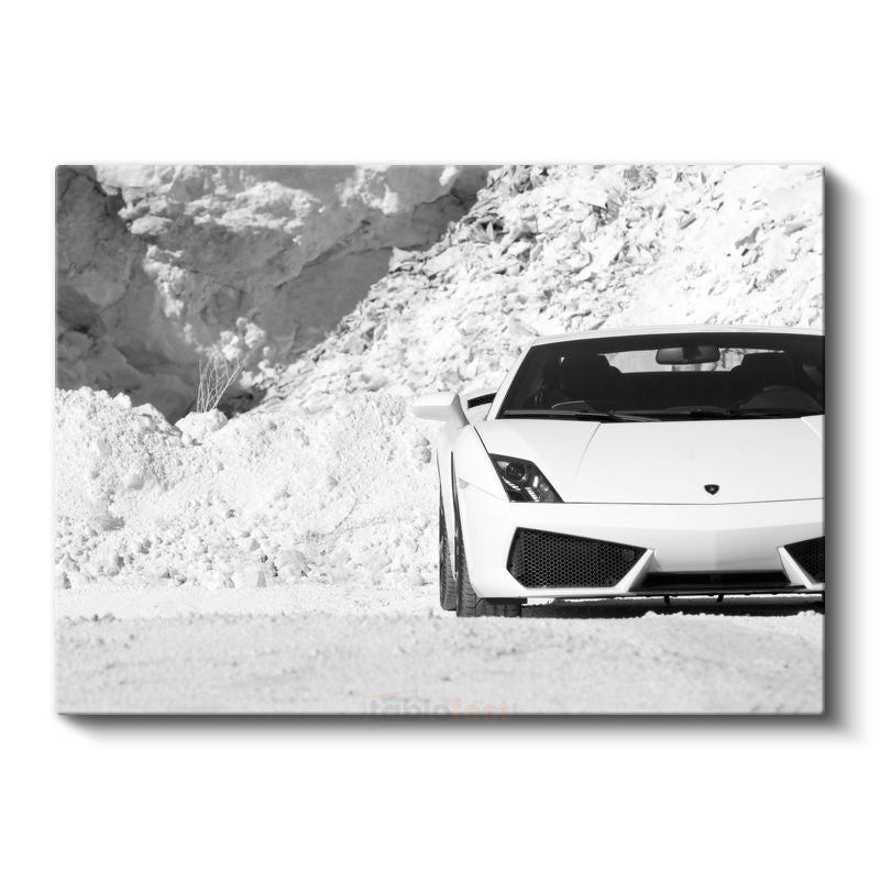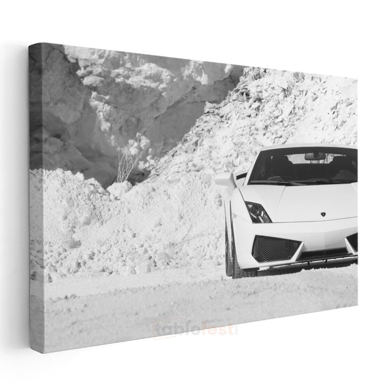 Lamborghini Gallardo - Beyaz Spor Otomobil Profil Kanvas Tablo