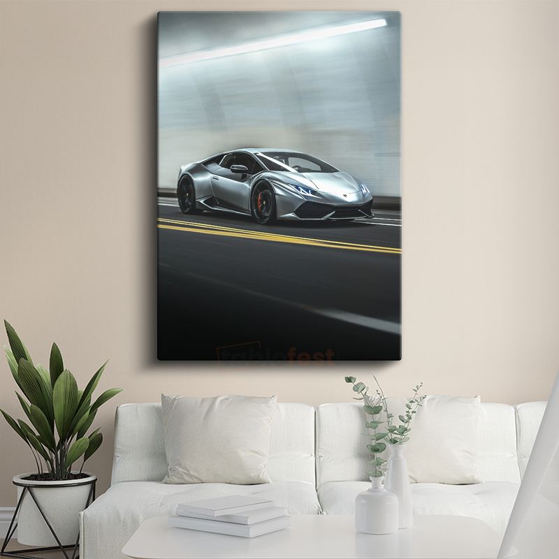 Lamborghini Huracan - Gümüş Süper Otomobil Dinamizmi Kanvas Tablo