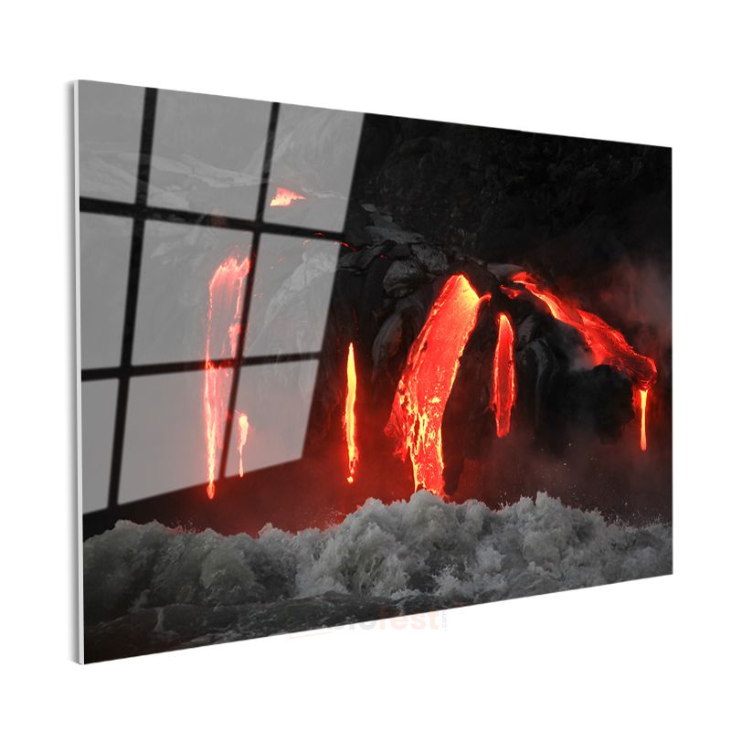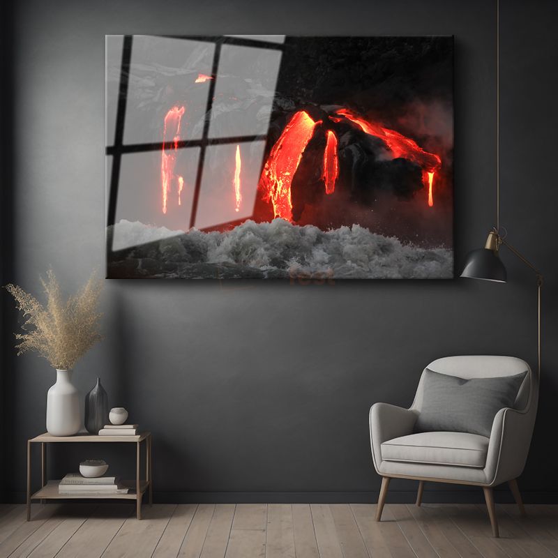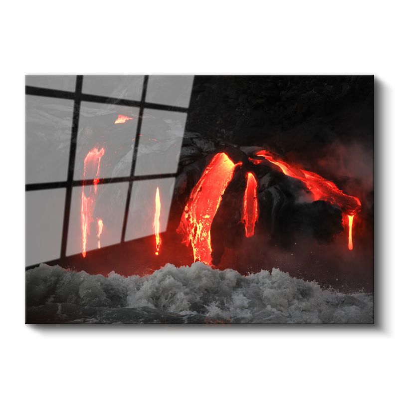 Lav Akıntısı - Ateş ve Su Buluşması Cam Tablo