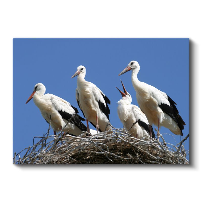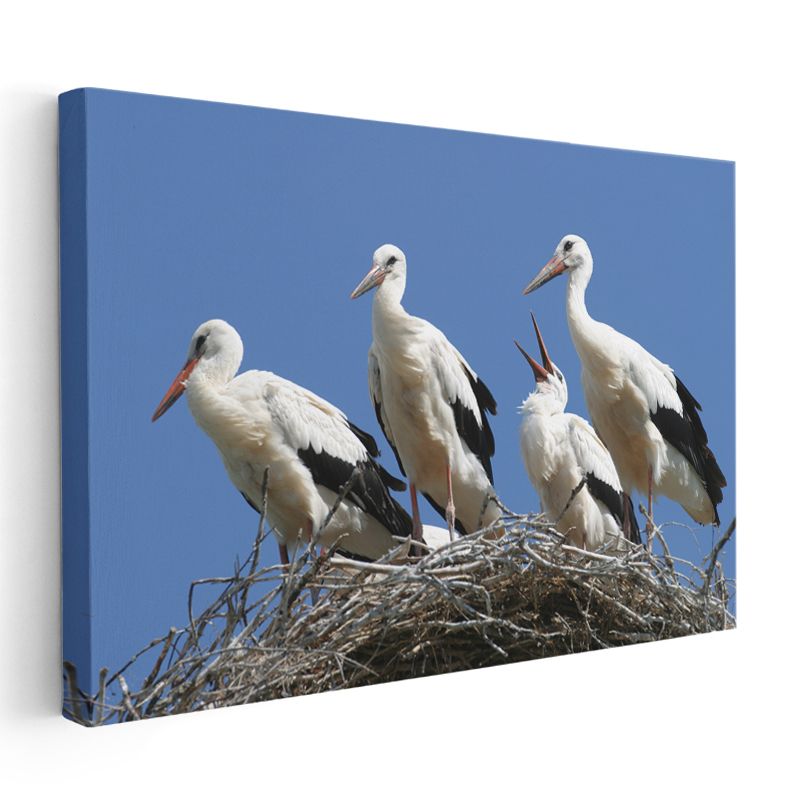 Leylek Ailesi - Yuvada Toplanan Beyaz Kanatlar Kanvas Tablo