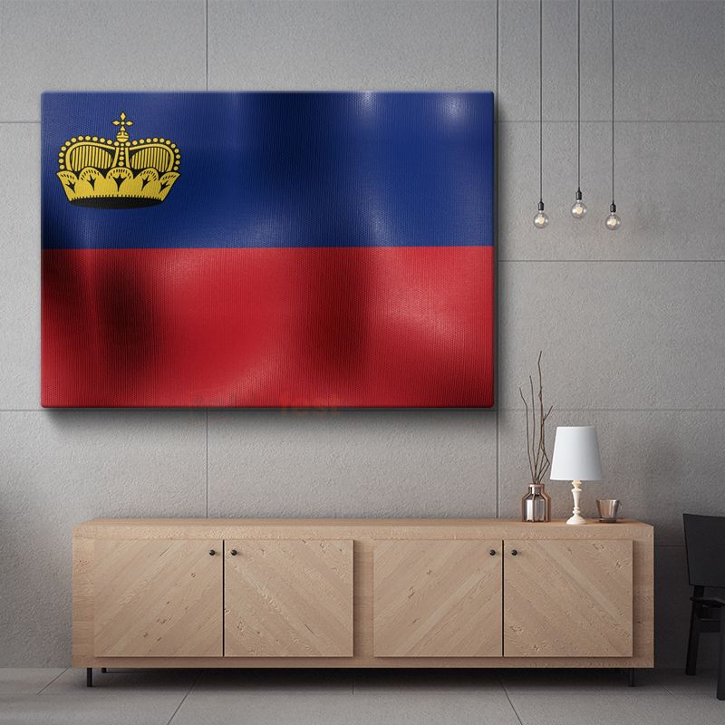 Liechtenstein Bayrağı - Dalgalı Görünüm Kanvas Tablo