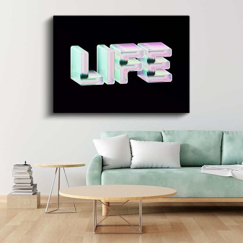 Life - Holografik 3D Tipografi Kanvas Tablo