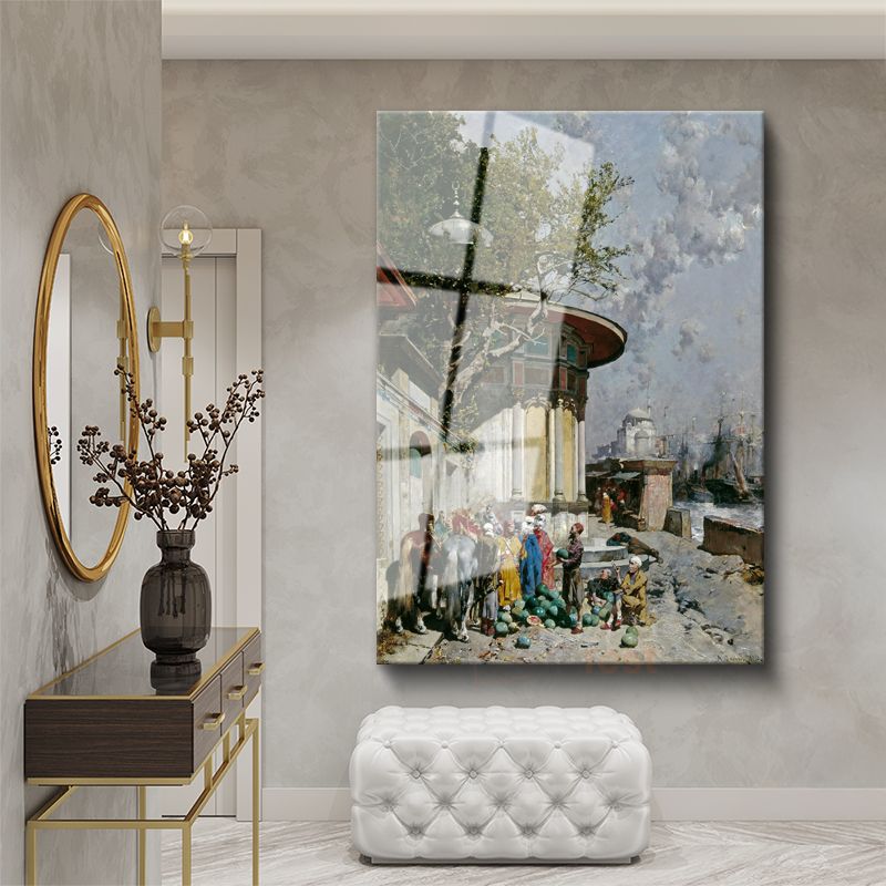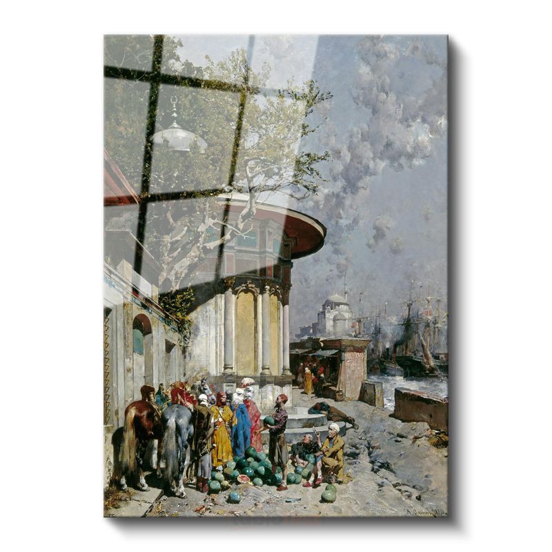 Liman Manzarası - Deniz Kenarında Tüccarlar Cam Tablo