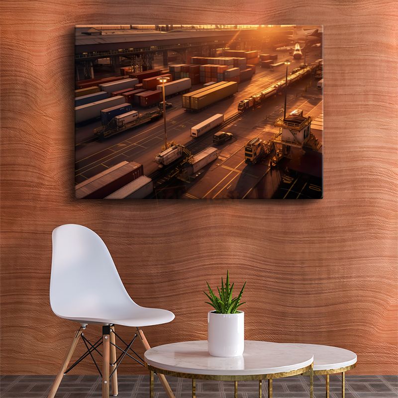 Liman Operatörü - Gün Batımında Lojistik Merkezi Kanvas Tablo