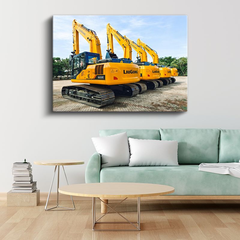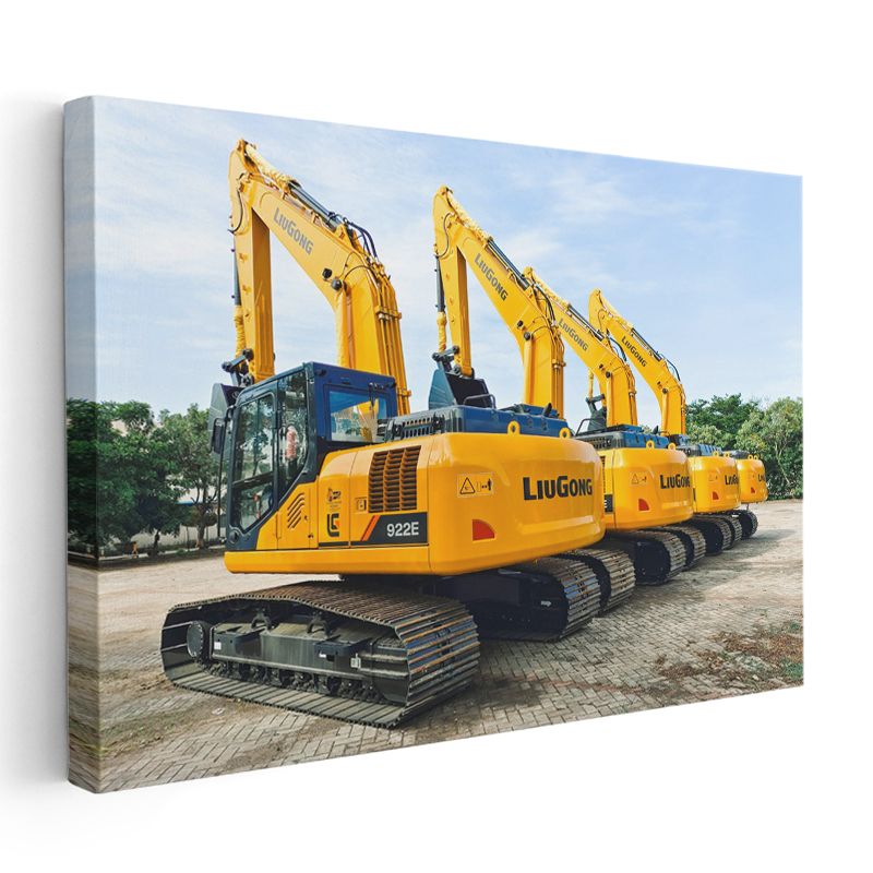 Liugong Ekskavatör Filosu - Sarı İş Makineleri Dizisi Kanvas Tablo
