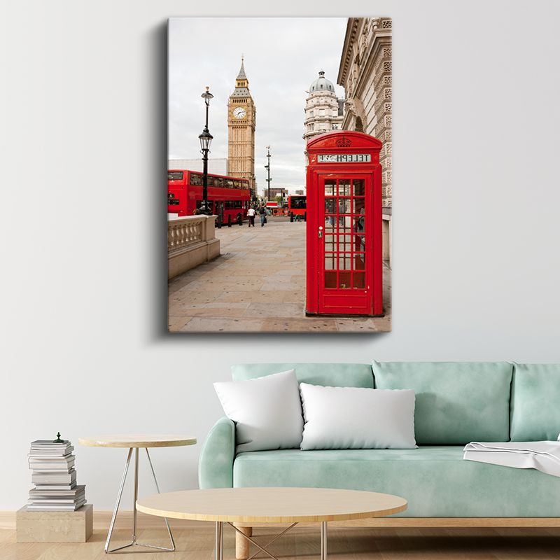 Londra Simgeleri - Kırmızı Telefon Kulübesi Kanvas Tablo