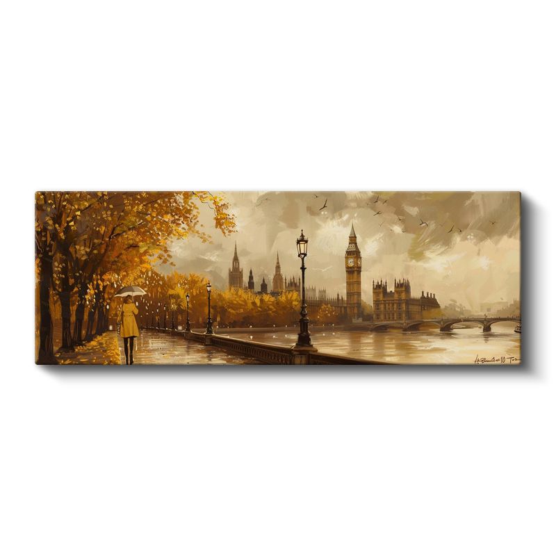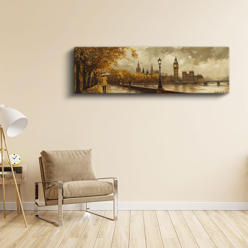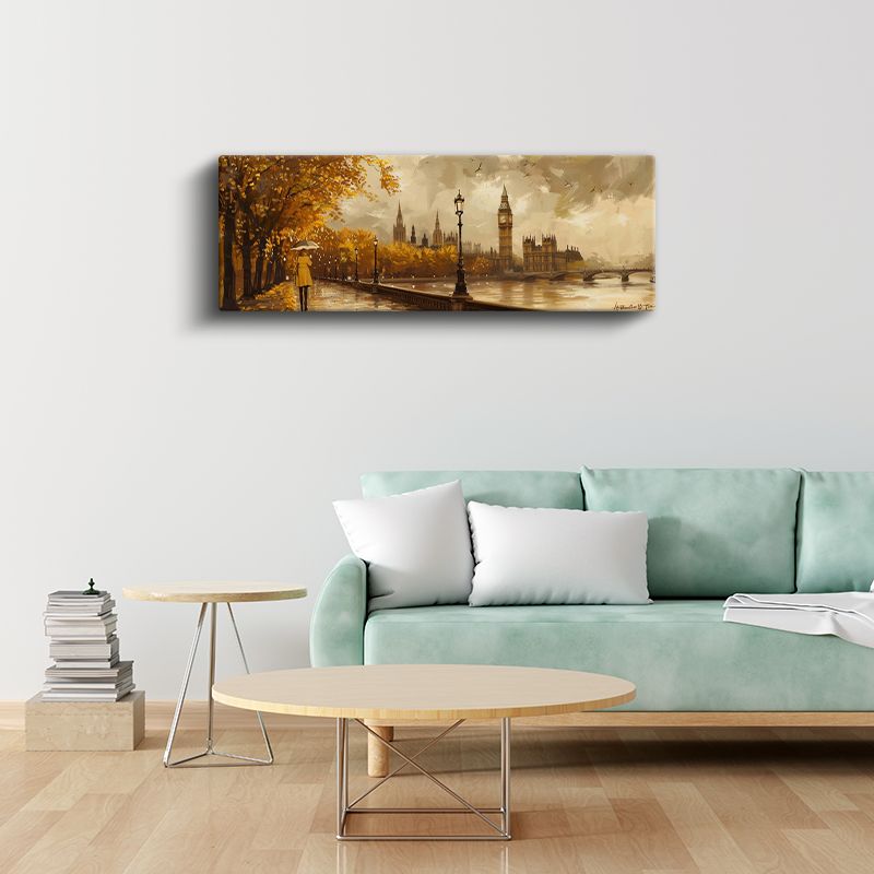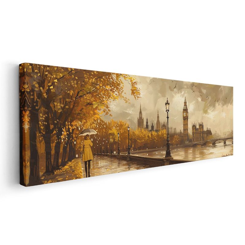 Londra Sonbaharı - Sarı Şemsiyeli Thames Yürüyüşü Kanvas Tablo