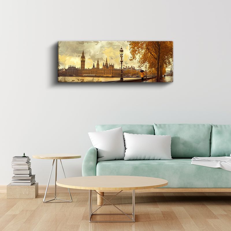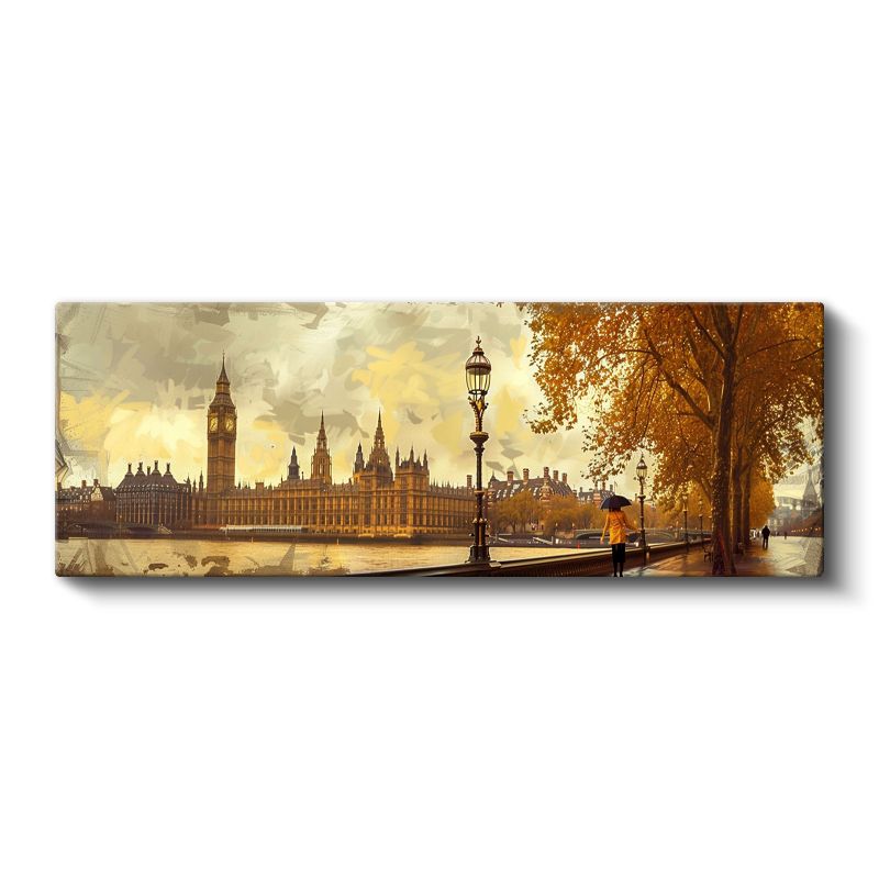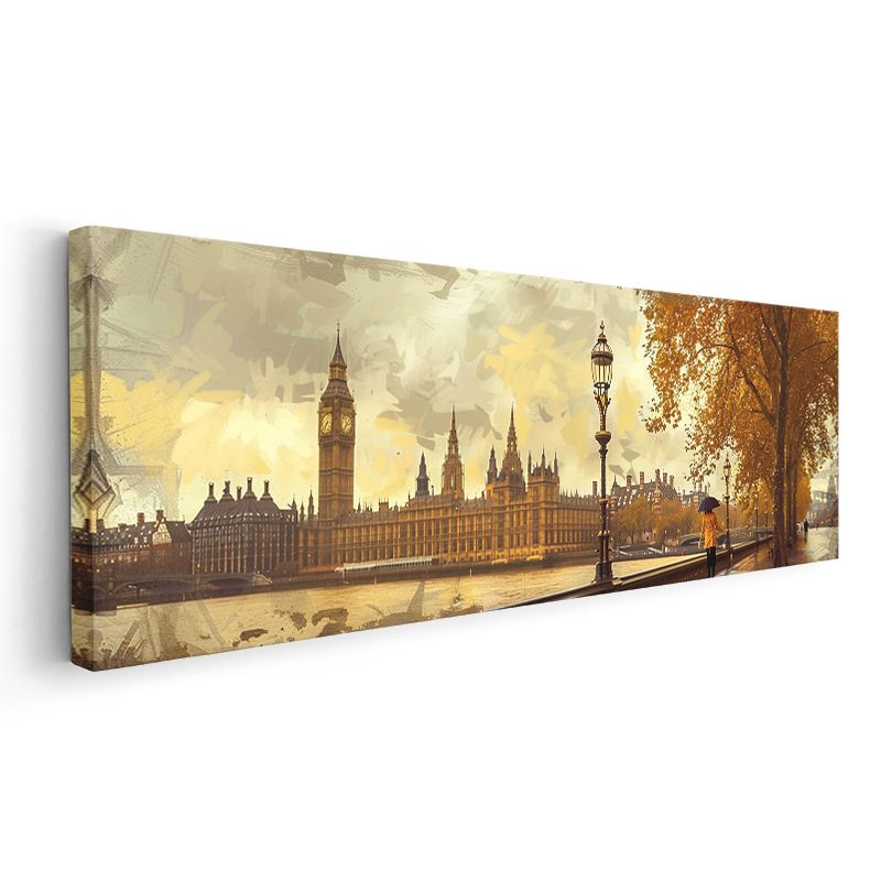 Londra Sonbaharı - Sarı Şemsiyeli Westminster Manzarası Kanvas Tablo