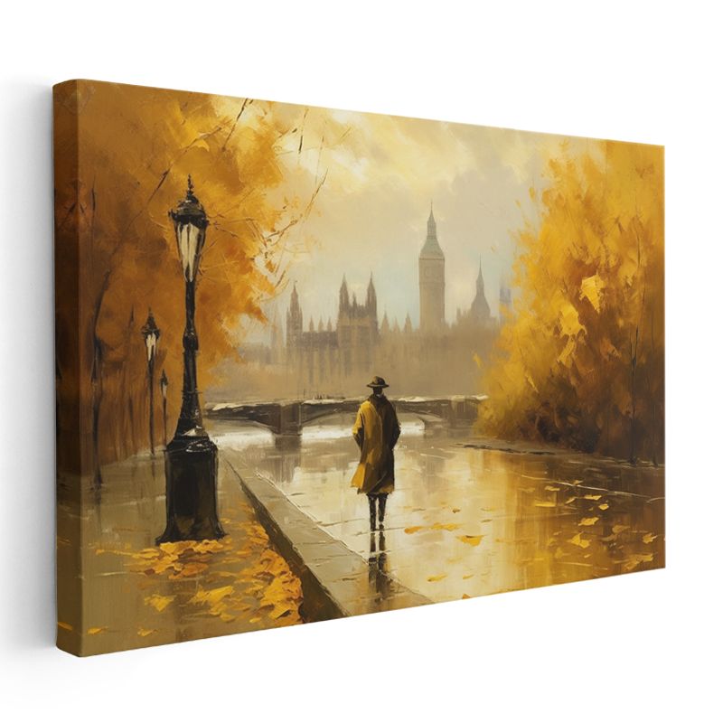 Londra Sonbaharı - Westminster Manzaralı Yürüyüş Kanvas Tablo