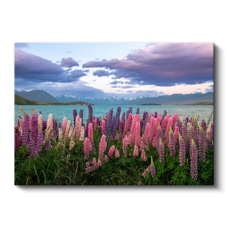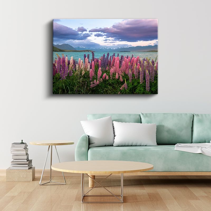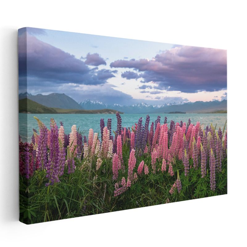 Lüpin Çiçekleri - Göl Manzaralı Doğa Fotoğrafı Kanvas Tablo